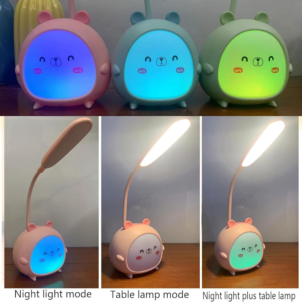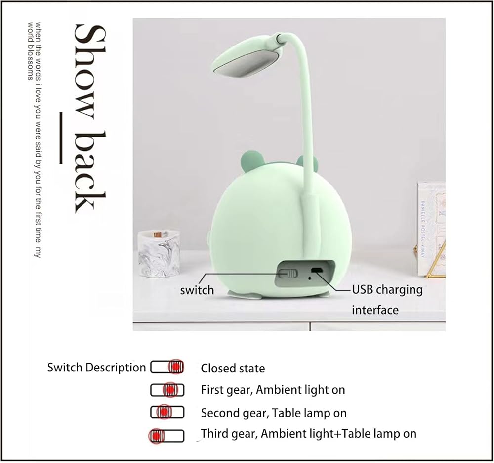 【ثلاثة أوضاع و7 أضواء محيطة ملونة】يحتوي مصباح الكلب على ثلاثة أوضاع إضاءة: 1. ضوء ليلي 2. مصباح طاولة 3. مصباح طاولة + ضوء ليلي، الضوء الليلي هو 7 ألوان من الضوء المحيط. يمكنك التكيف مع أي مستوى تحبه لإنقاذ عينيك.
