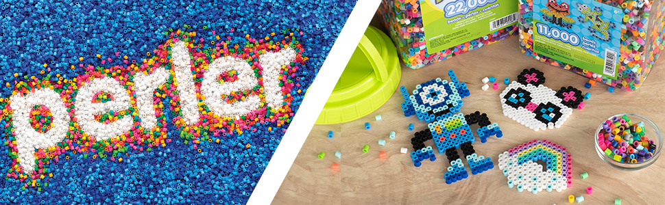 Includes (3500) assorted Perler fuse beads, (1) sheet of reusable ironing paper, (1) tweezer, and (1) set of instructions.
