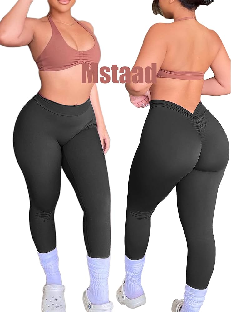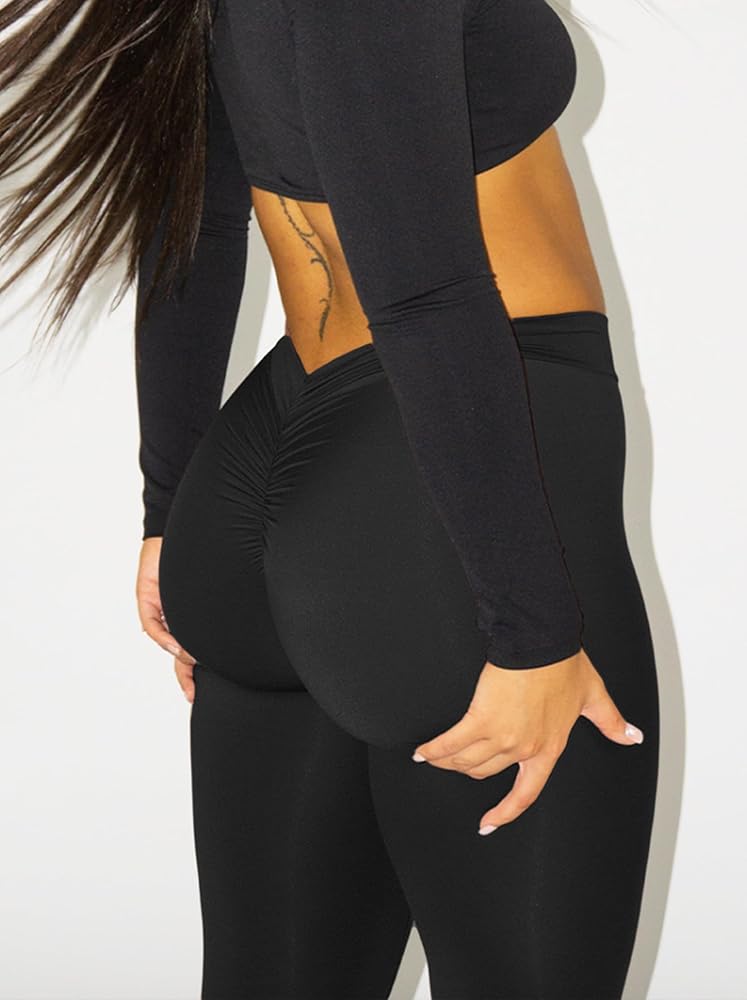 سروال ضيق على شكل حرف V من الخلف لرفع المؤخرة للنساء لممارسة التمارين الرياضية في صالة الألعاب الرياضية بخصر عالٍ، سروال يوجا أسود