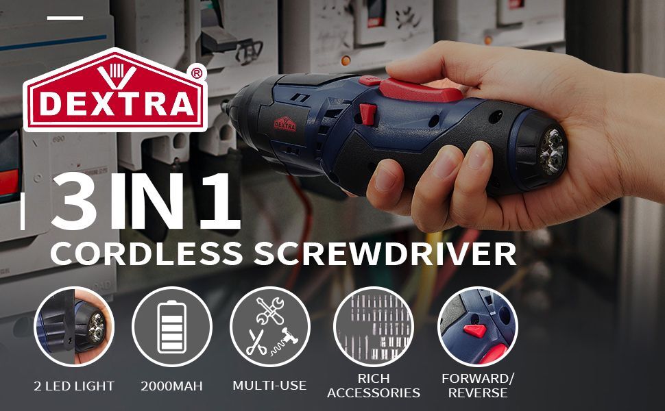🔩𝗟𝗜𝗚𝗛𝗧 𝗗𝗨𝗧𝗬 & 𝗟𝗘𝗗 𝗟𝗘𝗗 𝗪𝗢𝗥𝗞𝗜𝗡𝗚: تعبت من التعب باليد والقضايا العصبية أثناء استخدام مفك البراغي التقليدي؟ مفك البراغي الكهربائي اللاسلكي من ديكسترا هو الحل الأمثل! مقبض السيليكون المريح غير القابل للانزلاق والجسم خفيف الوزن يجعل استخدامه سهلاً. بالإضافة إلى ذلك، تعمل مصابيح العمل LED المزدوجة على إضاءة مساحات العمل المظلمة دون ظل، مما يجعلها أداة مثالية لاكتشاف وإصلاح انقطاعات الطاقة العرضية في المنزل