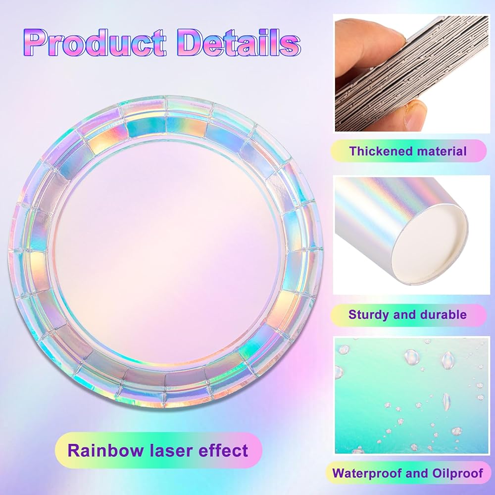 مواد عالية الجودة: مجموعة أدوات مائدة الحفلات قزحية الألوان مصنوعة من مواد ورقية صالحة للطعام، وسطح مانع للتسرب، ومقاوم للماء والزيوت. سوف يؤدي المظهر المجسم إلى رفع المظهر العام لحفلتك.