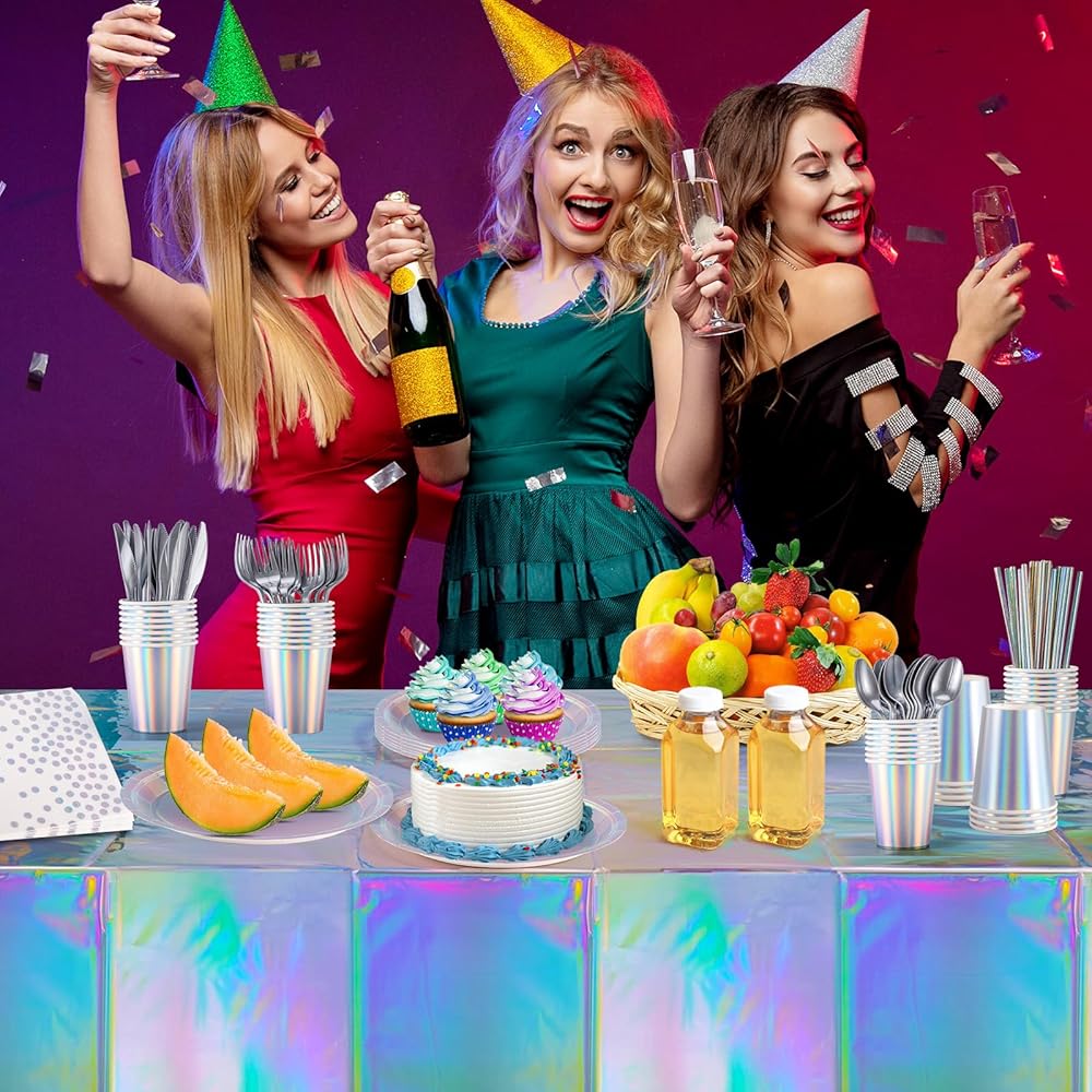 مريحة وعملية: مجموعة أدوات مائدة الحفلات قزحية الألوان هذه سهلة التنظيف، ببساطة قم بلفها بمفرش طاولة، ثم ضعها في سلة المهملات. إنها توفر الكثير من وقت ومجهود التنظيف، وتستمتع بأوقات سعيدة مع عائلتك وأصدقائك.