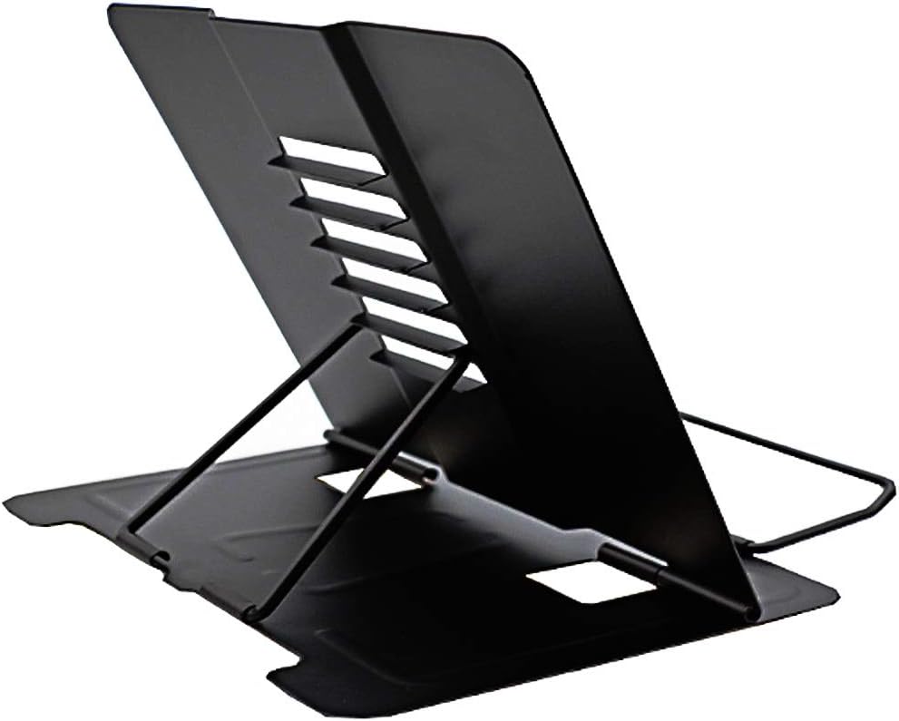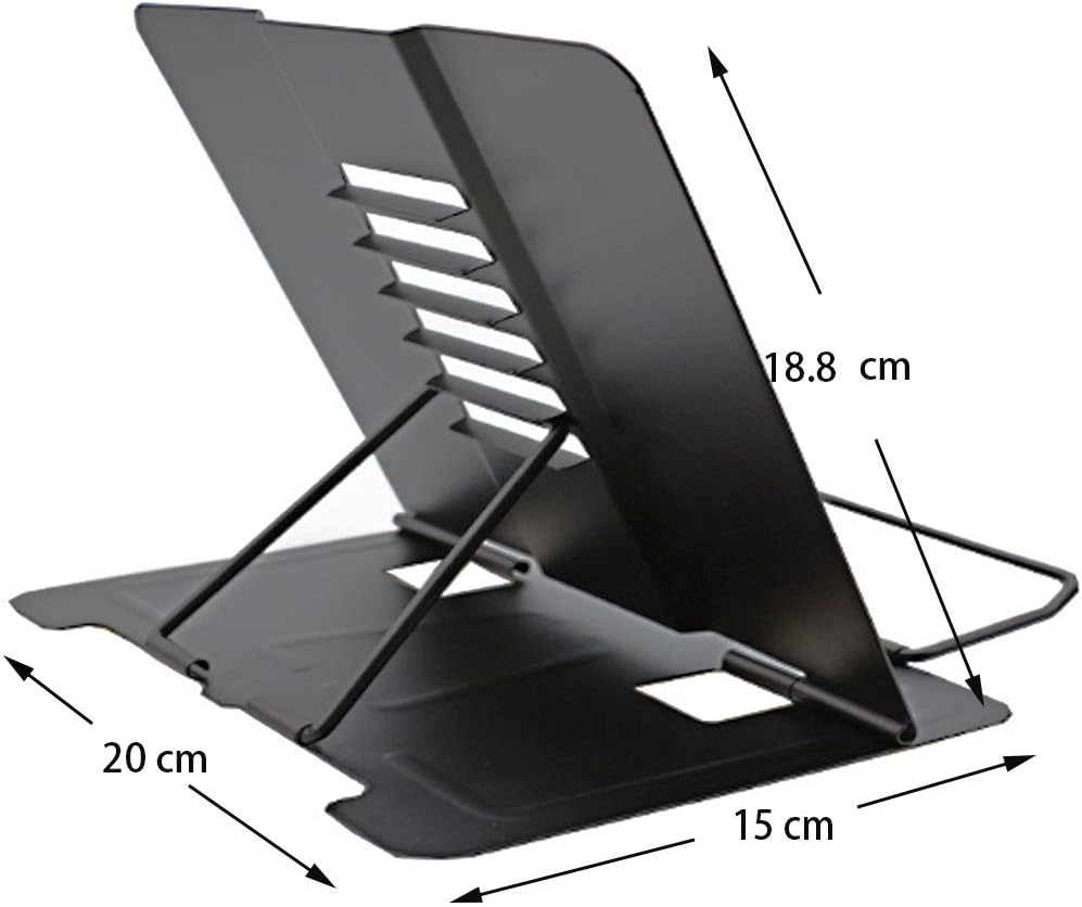 حامل كتب معدني قابل للطي مع 6 زوايا قابلة للتعديل ومشبك صفحة ورقية، حامل كتب قوي لسطح المكتب لكتب الطبخ والمجلة والكتب المدرسية والمستندات وكتاب الموسيقى والكمبيوتر المحمول والكمبيوتر اللوحي (أسود)