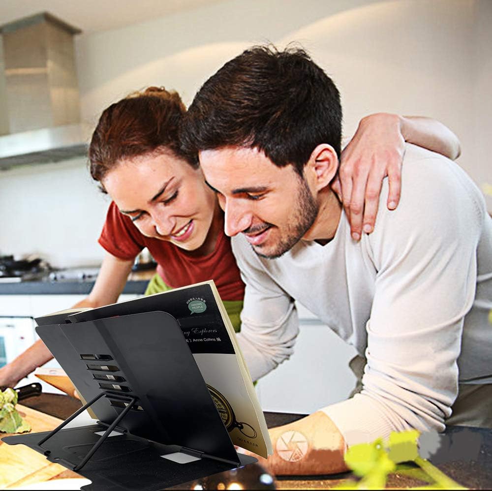 Many people facing the Reading for a long time cause neck & back pain, The cookbook holder is adjustable with various notches at the movable rear back stand to adjust the height and angle, to