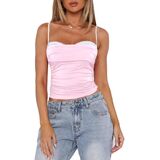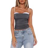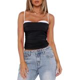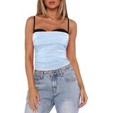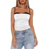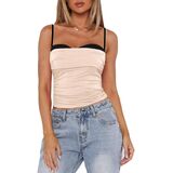 Women's Crop Camisole Slim Fit Backless Sleeveless Ruched Fake Two-Piece Spaghetti Strap Tops for Party Club