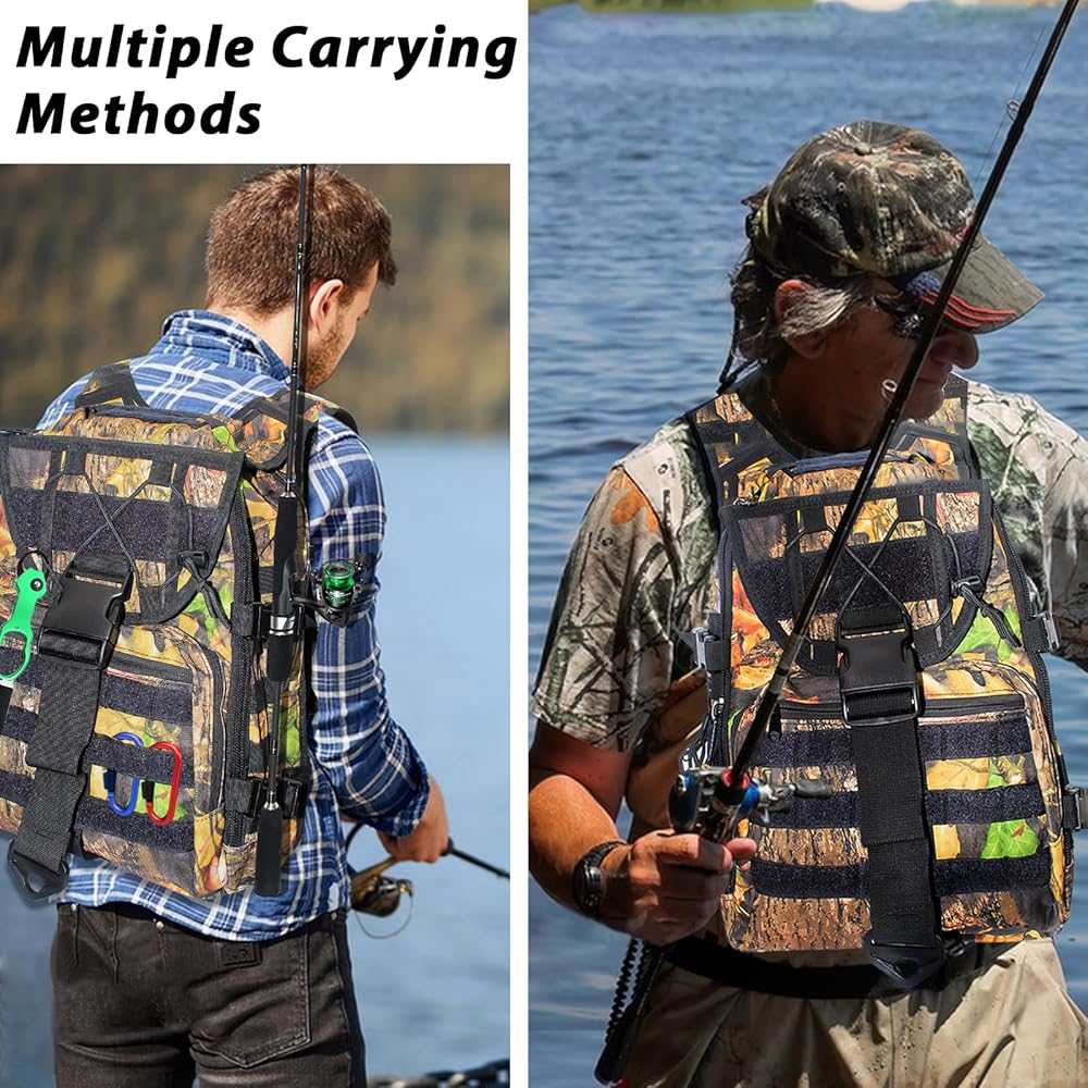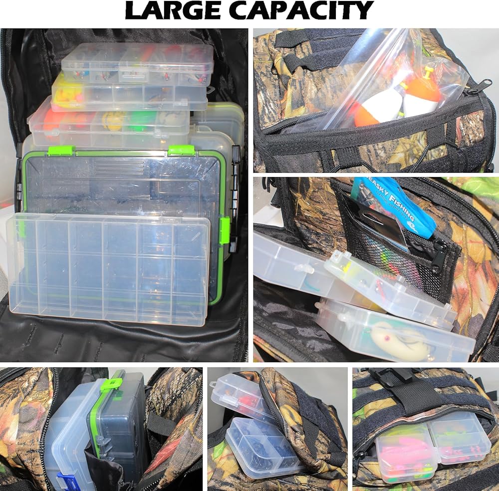 Tactical Design with Multiple Compartments: Offers multiple compartments and pockets to efficiently organize your fishing tackle and accessories.Including: top pouch, zipper pocket with lid, backpack main compartment and other six parts of the loading space