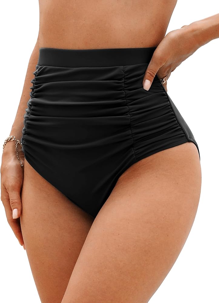 تغطية كاملة وتحكم في البطن: الجزء السفلي من البكيني المكشكش، مع حزام خصر مرن وألواح مطوية في الأمام والجوانب، مما يساعد على تغطية منطقة البطن وتوفير تغطية متوسطة للورك.