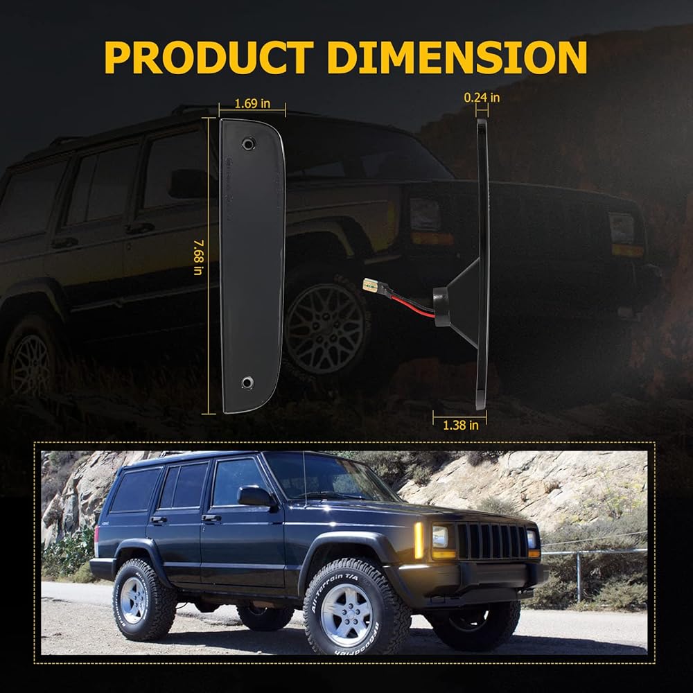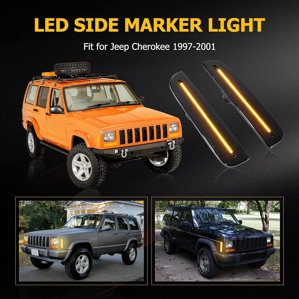 خاصة بالمركبة: تم تصميم مصابيح التحديد الجانبية للسائق والراكب خصيصًا للاستخدام في جميع موديلات جيب شيروكي 1997-2001. يمكنهم استبدال أرقام أجزاء OEM 55055146، 55055147، CH2550118، وCH2551118. وهذا يضمن ملاءمة دقيقة وتوافقًا مع سيارتك.