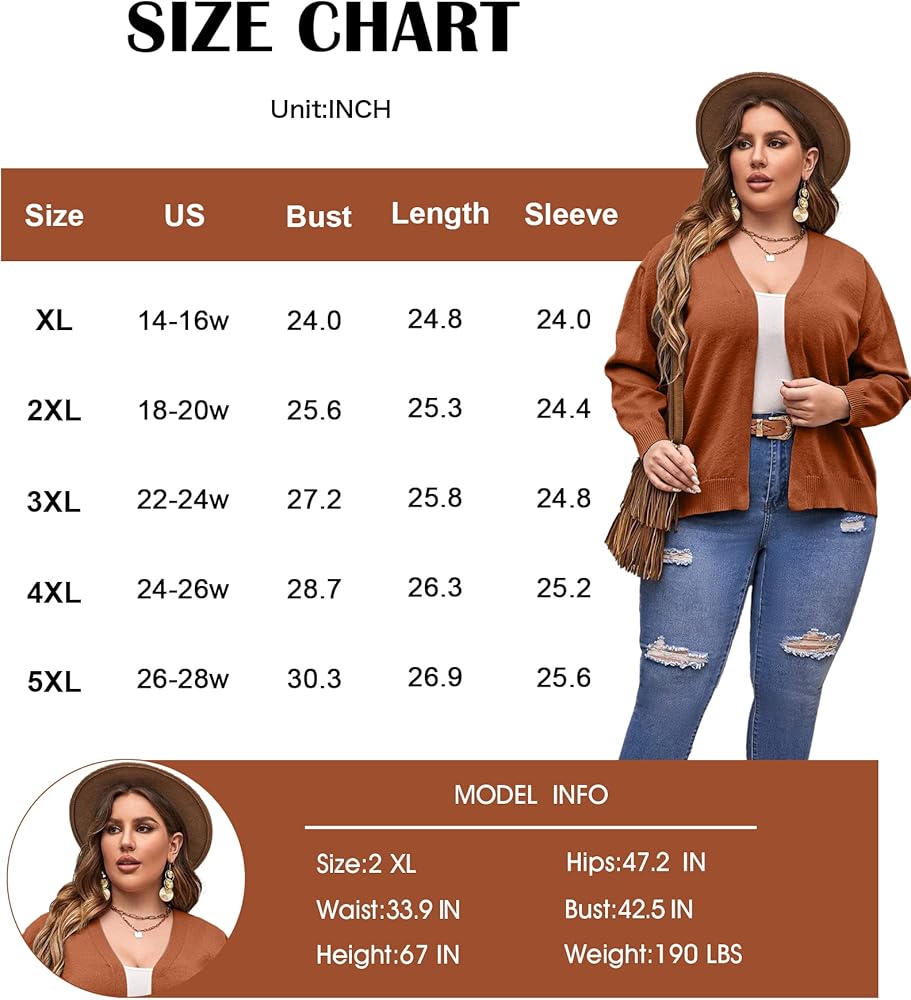 【سترة صوفية بمقاس كبير للنساء】 سترات صوفية للسيدات بمقاس كبير مصنوعة من 95% رايون، 5% بوليستر، نسيج ناعم ومريح وناعم وقابل للتمدد للنساء ذوات الحجم الكبير، لن يخنقك من الداخل، وليس فضفاضًا، مثالي للارتداء اليومي يستخدم. سترة حريمي خفيفة الوزن وصديقة للبشرة، تمنحك مظهرًا خفيفًا وأنيقًا للشتاء والربيع. اختاري ستراتنا النسائية ذات السترة المفتوحة من الأمام، واستمتعي بأيام غير رسمية ومريحة في هذا الشتاء!