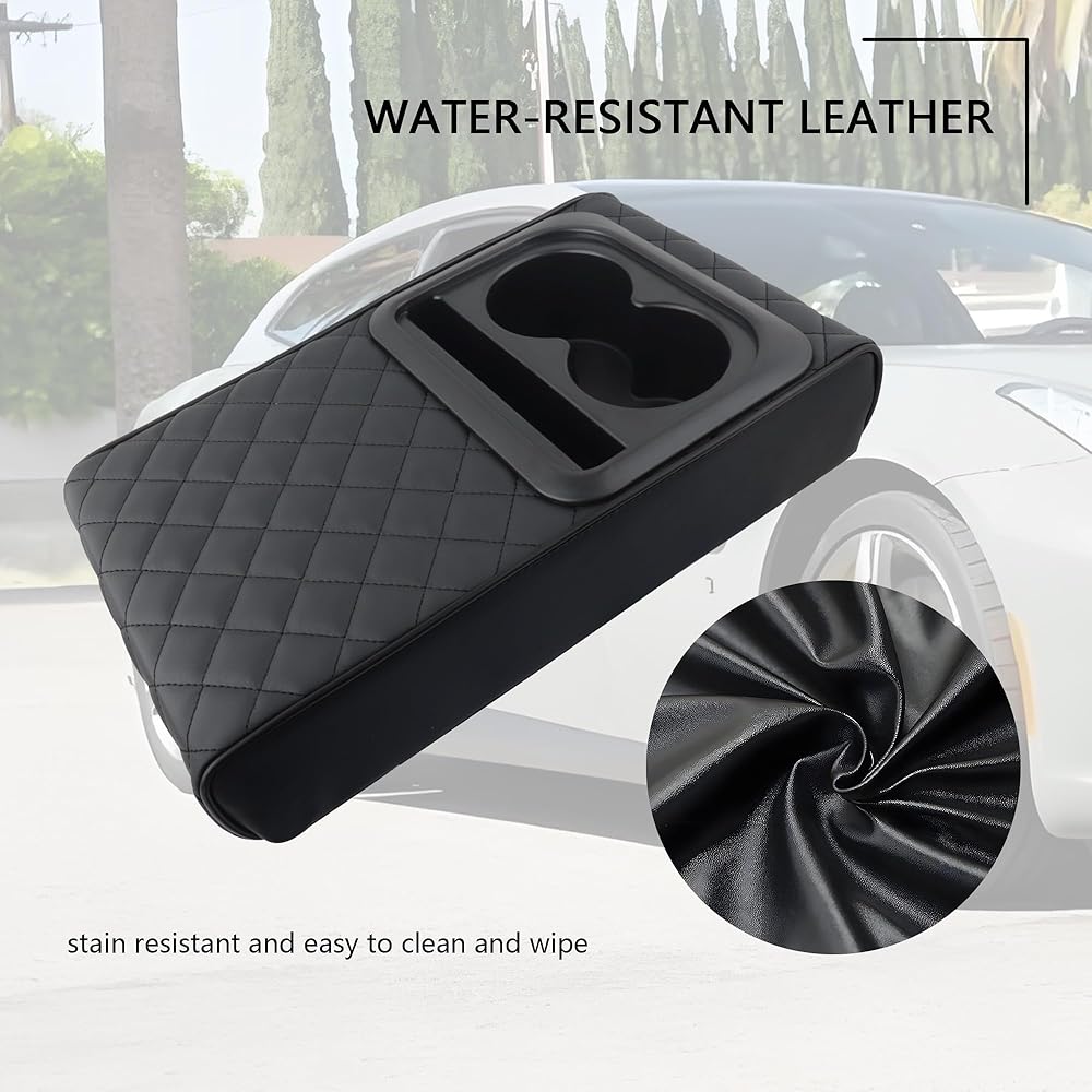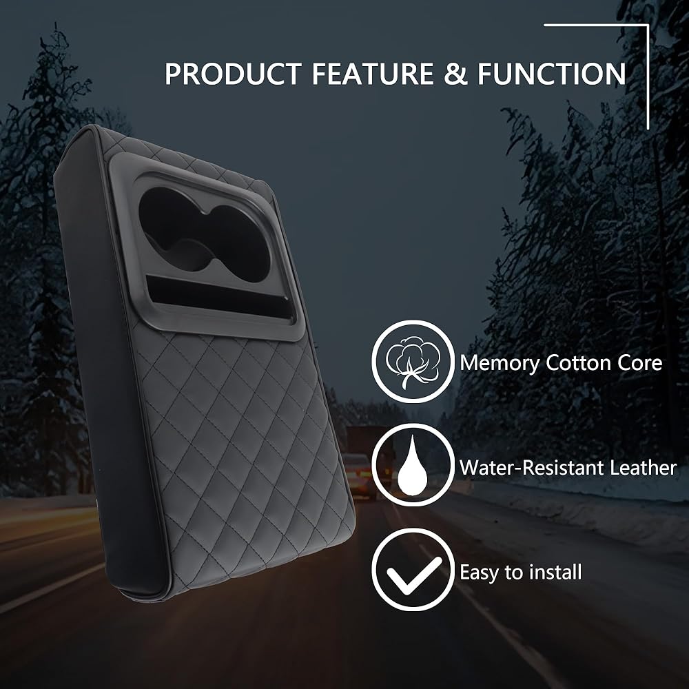 🚘Console Cover with Cup Holder - The exterior of the car armrest box lid is designed with thickening, set up with two cup holder positions and one storage side position. This setup is convenient for you to take and put water cups when you are traveling, and it is not easy to knock over. The storage side position has the advantage of depth and can be used to store car card or cell phone, which is quick and convenient.