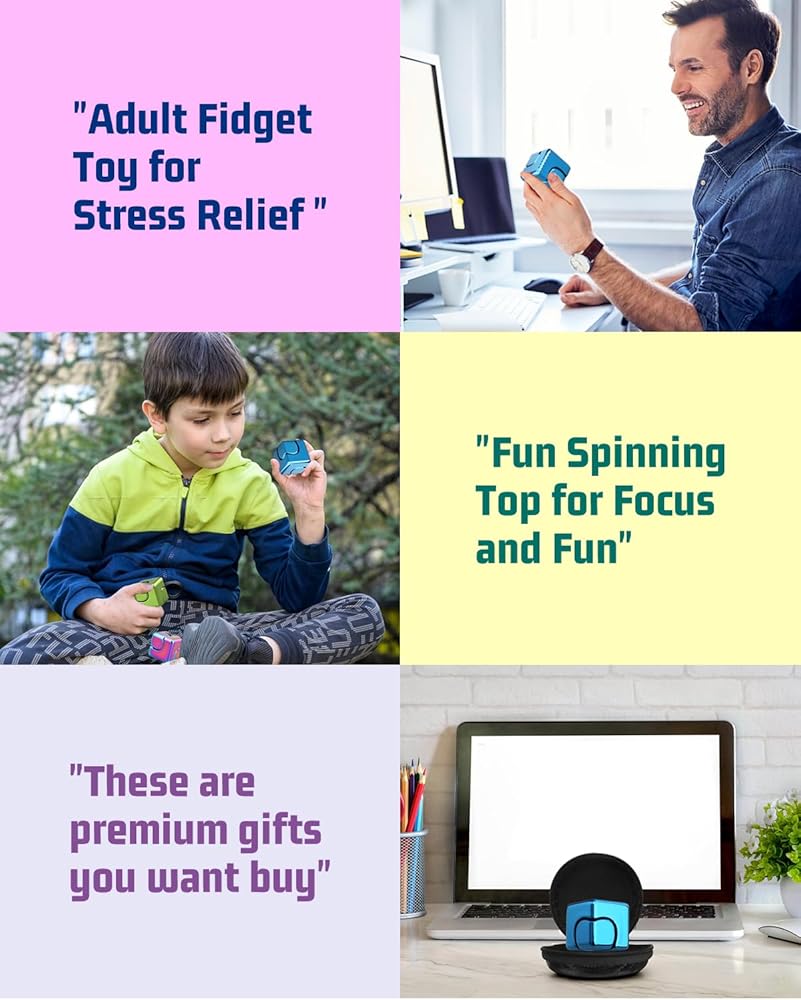 Portable Easy and Enjoyable Desk Spinning: To spin these fidget toys, simply hold them with one hand or place them on the desk. The toys will continue spinning when powered by hand, offering endless entertainment. Give it a try now!