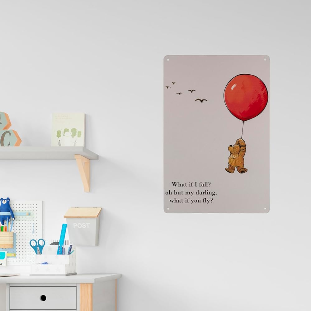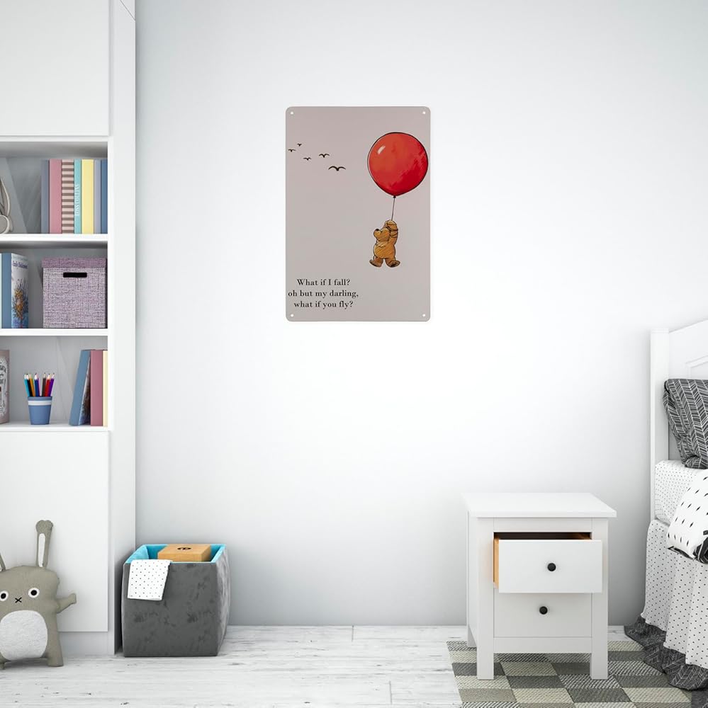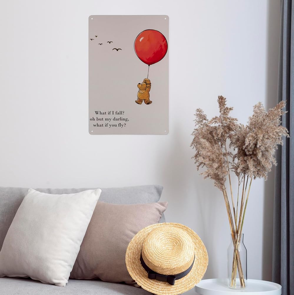 ماذا لو سقطت? Oh But My Darling What If You Fly لافتات معدنية عتيقة من القصدير، ديكور المنزل/ديكور المكتب/ديكور غرفة النوم/ديكور غرفة المعيشة، ديكور جدار بار المقهى، مقاس 8 × 12 بوصة