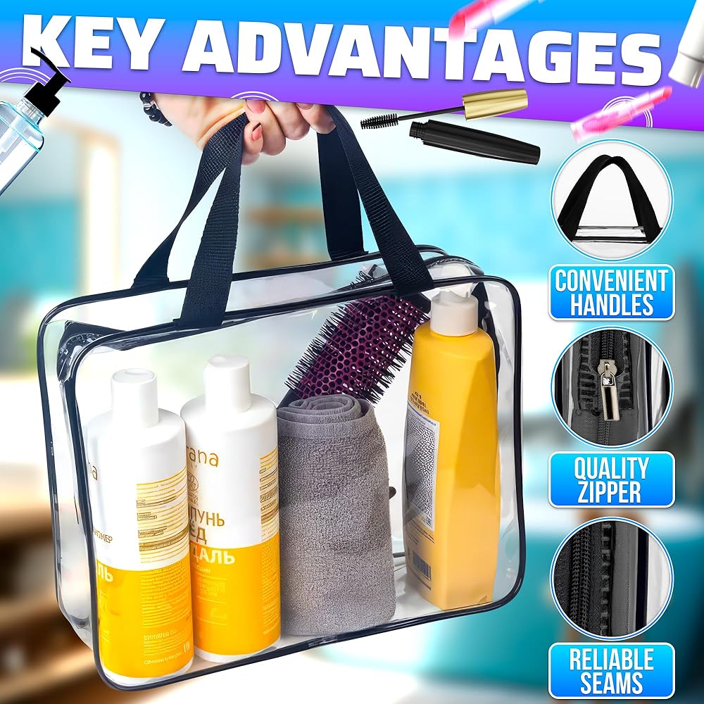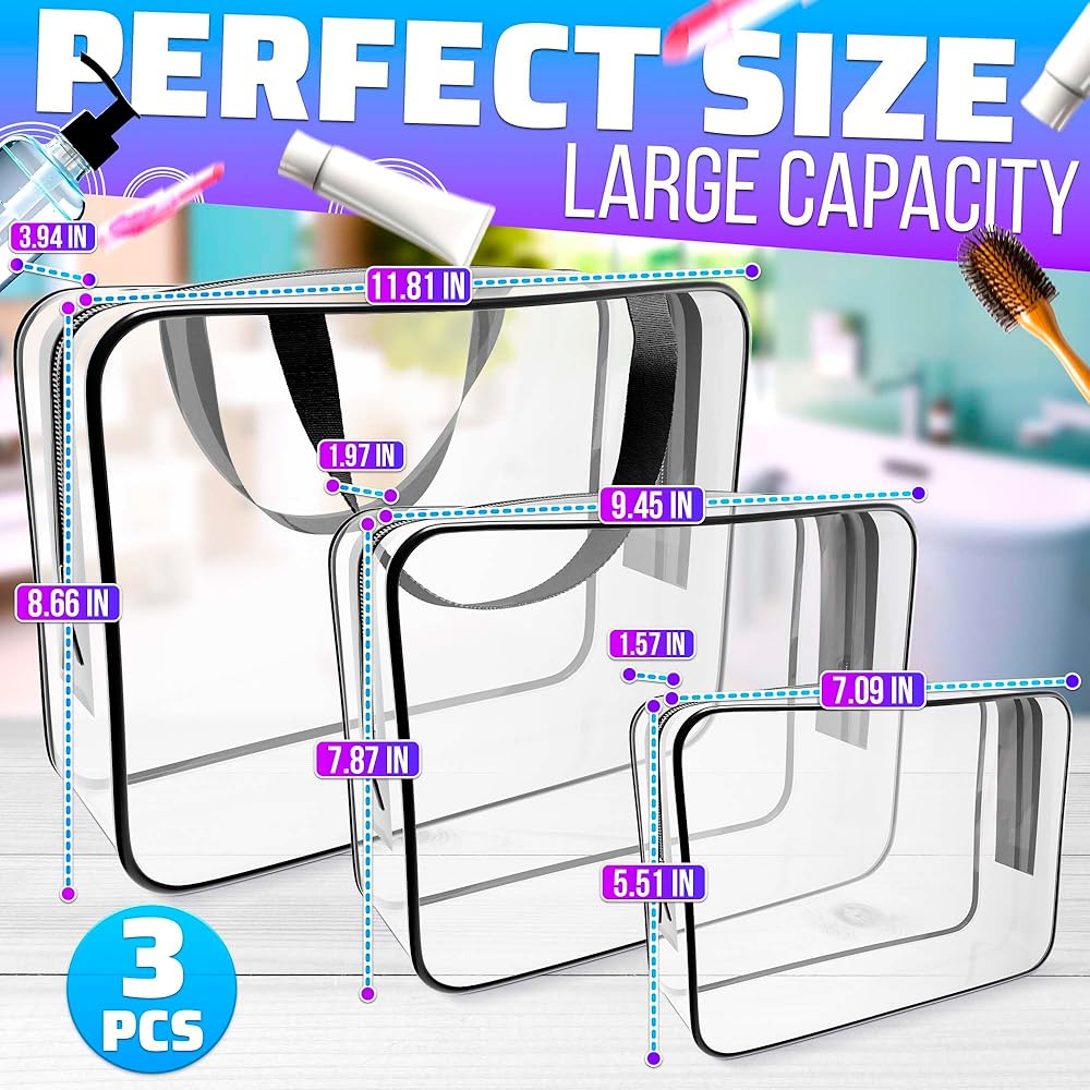 الحجم المثالي: تتوفر حقيبة أدوات الزينة الشفافة الخاصة بنا بثلاثة أحجام مختلفة، مما يوفر لك المرونة في اختيار الحقيبة التي تناسب احتياجاتك بشكل أفضل مما يجعلها خيارًا مثاليًا للرحلة الطويلة.