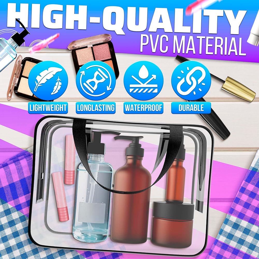 جودة فاخرة: حقيبة أدوات الزينة البلاستيكية الخاصة بنا مصنوعة من بلاستيك PVC القوي، مما يضمن أنها متينة وخفيفة الوزن. إنه مصمم للاستخدام طويل الأمد، وهو الرفيق المثالي لأي رحلة.