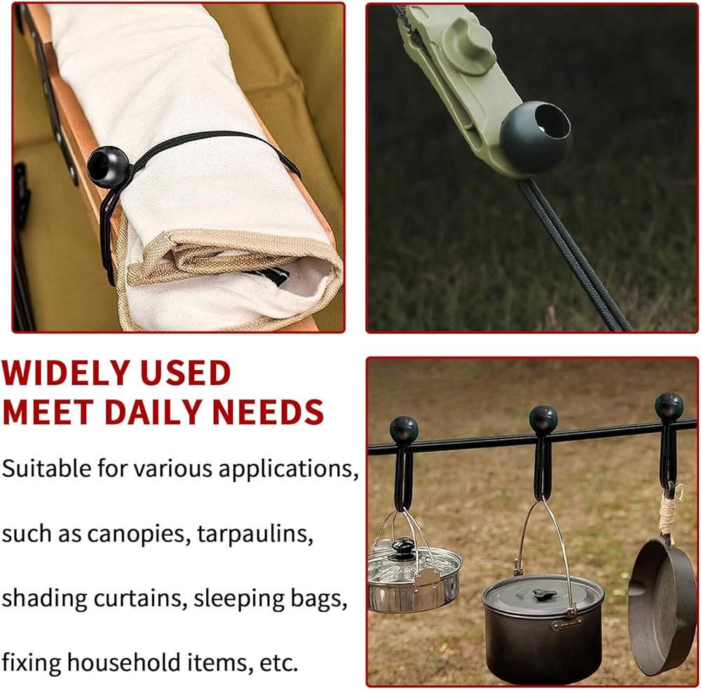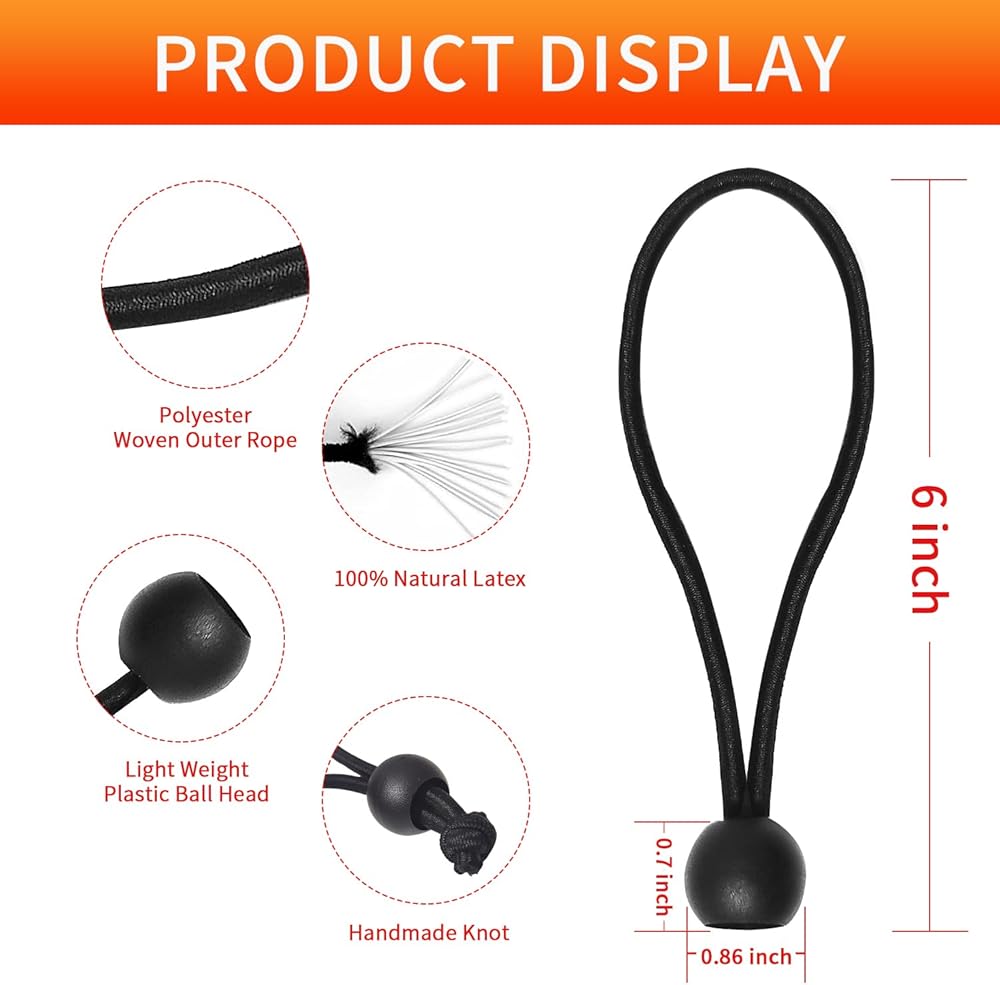 【FEATURES】:Baiann Black bungee shock cord ,diameter 1/5 inch(5mm), With ball,Stretches to 12-Inches, bungee length is 6-Inches (including ball), nylon ball diameter is 1-Inches, can combine multiple ball bungees for even greater length & function. 【USEFUL】:Stretch cord widely used in bungee cord, bungee rope, bungee net, shock rope, cargo nets, trellis netting, bungee straps, elastic band, elastic belts, hammocks, hook straps,fasten/tie-down tarps with grommets, organize and secure hoses, cords, and wires, use for hanging objects. 【CONVENIENT USE】: Simple to install, remove or reposition and re-usable and for both indoor and outdoor use. They're a great addition to our daily routine. 【DURABLE MATERIAL】:High quality nylon outer layer woven, UV resistant, suitable for a variety of working environments, desert, snow, indoor and outdoor.