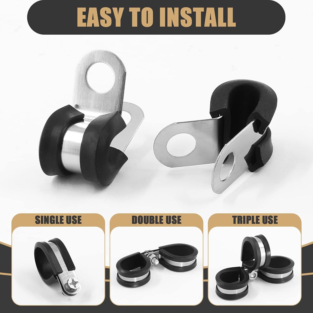 Wide Applicability: P-shaped design makes the chuck dynamic and flexible, easy to twist, bend and operate during installation. Holes in the clip make it easy to grip wires, cables and pipes. It is very suitable for installing all kinds of lines, such as steel pipe, hose, aluminum cable. It is widely used in windshields, automobiles, ships, marine and homes.