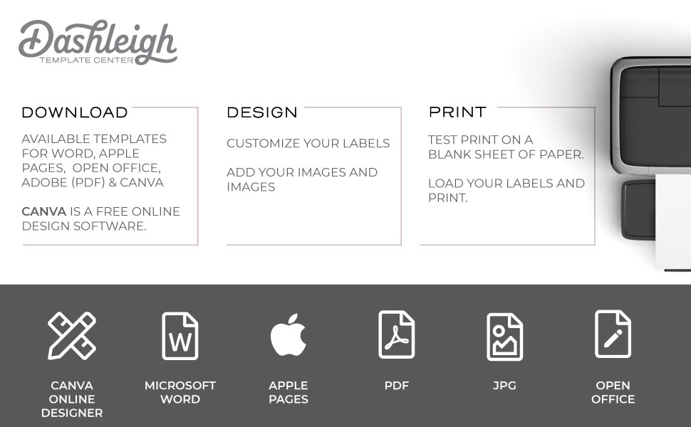 - اصنع ملصقات الفريزر عالية الجودة المخصصة والمخصصة لك؛ قوالب Microsoft Word أو PDF متوفرة في Dashleigh؛ طابعة نافثة للحبر