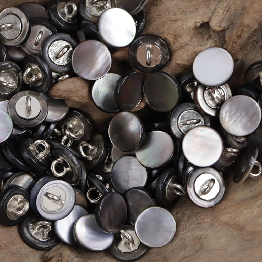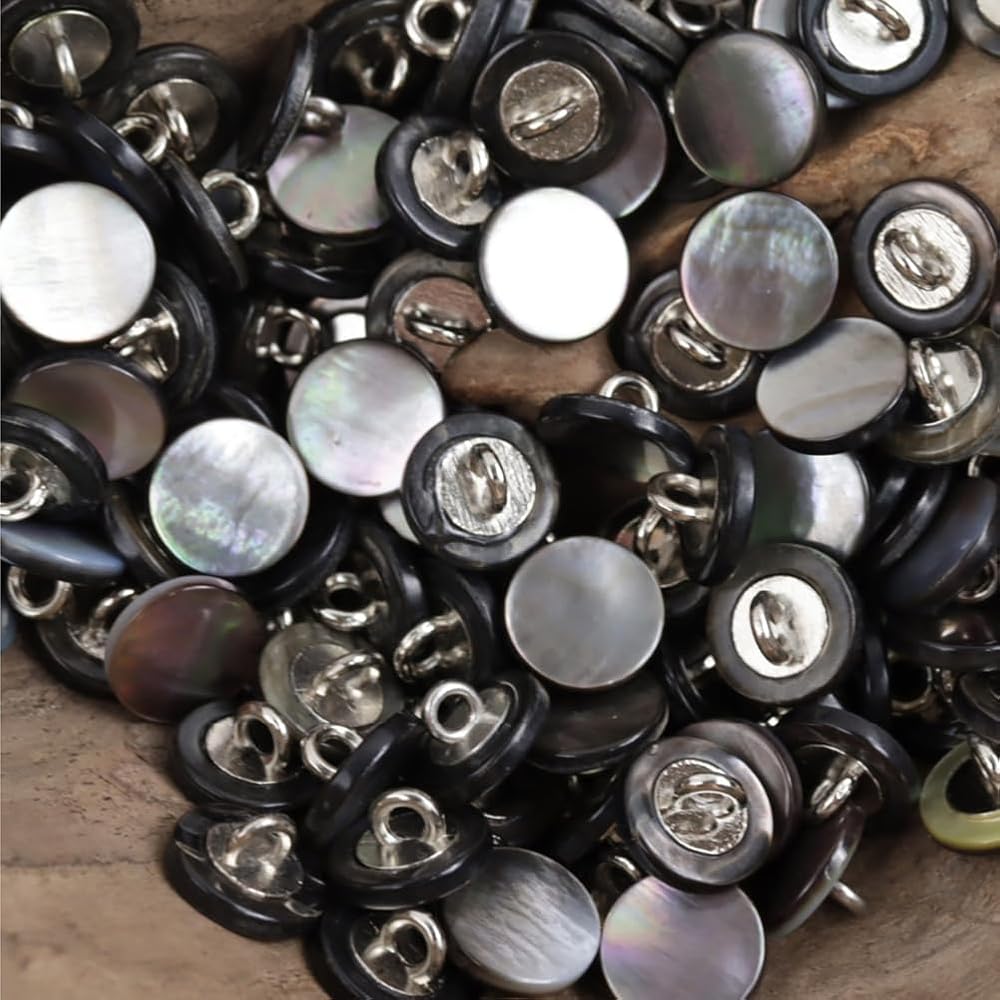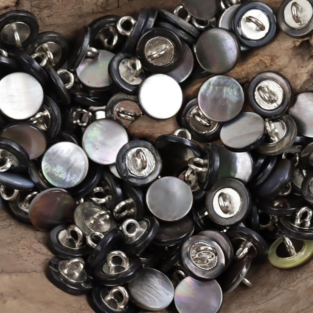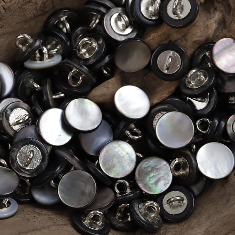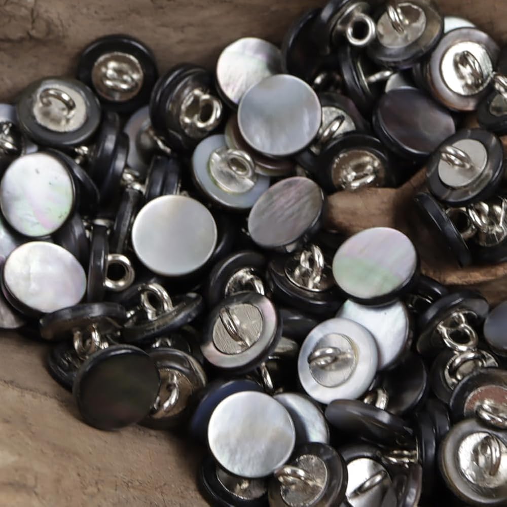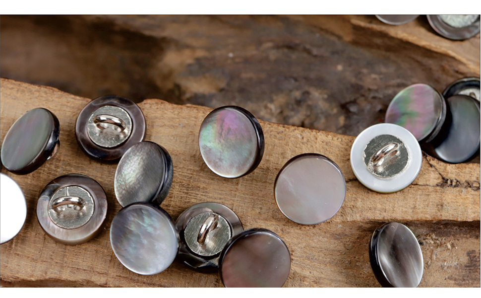 جميع الأزرار مصنوعة من أم اللؤلؤ الطبيعي، ولا يمكن أن تظهر الصور اللمعان الجميل حقًا. قبل أن تبدأ أعمال الخياطة، تحقق من حجم الأزرار التي تناسب ملابسك.