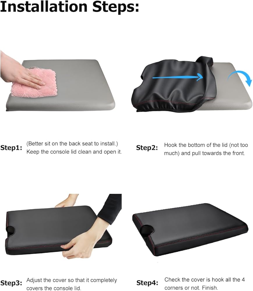 The shape and details of the armrest box of each car are different, so the design details of each armrest box cover and the degree of tightness of the elastic band will also be different. Of course, the installation method will be slightly different, please read the installation method carefully before installation. Upside-down or wrong installation steps may make the armrest box cover unsuitable. So if the cover is not suitable or have quality problem, please contact us first, we will do our best to help you solve the problem.