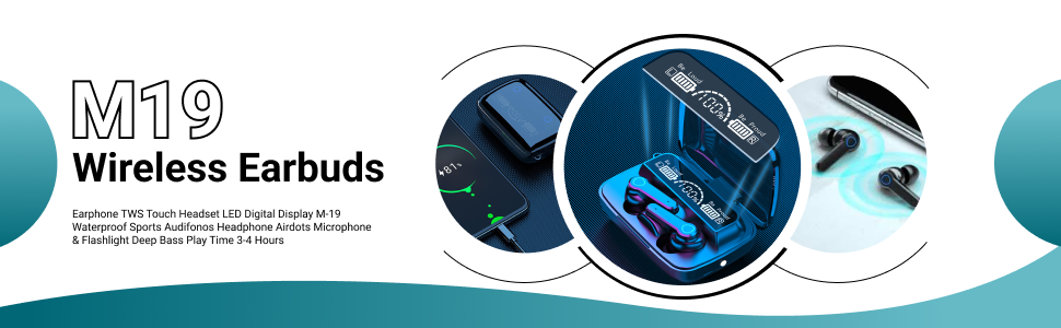 سماعات أذن لاسلكية M19 مستوردة، سماعة رأس تعمل باللمس، شاشة LED رقمية، سماعة رأس رياضية، ميكروفون ومصباح يدوي، صوت جهير عميق، جودة صوت ستيريو غامرة، وقت تشغيل طويل، سهل الاتصال