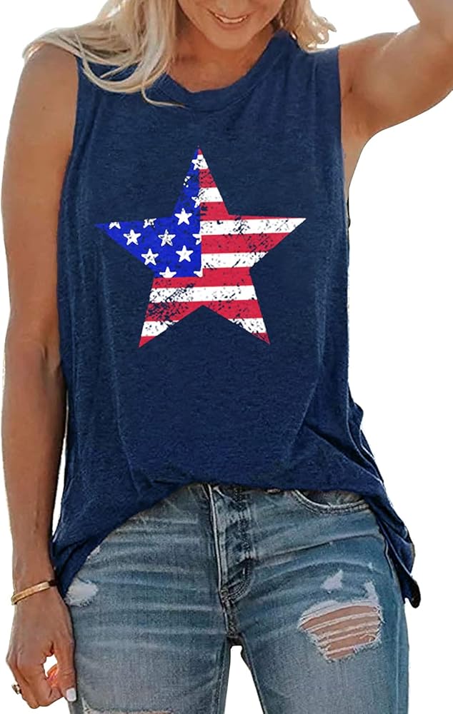 American Flag Star Graphics Tank Tops Women USA 4th of July Patriotic Tanks Independence Day Gift Shirt Sleeveless T-Shirt