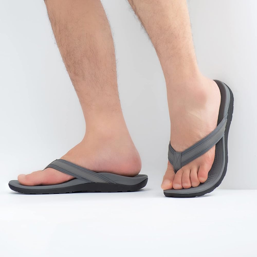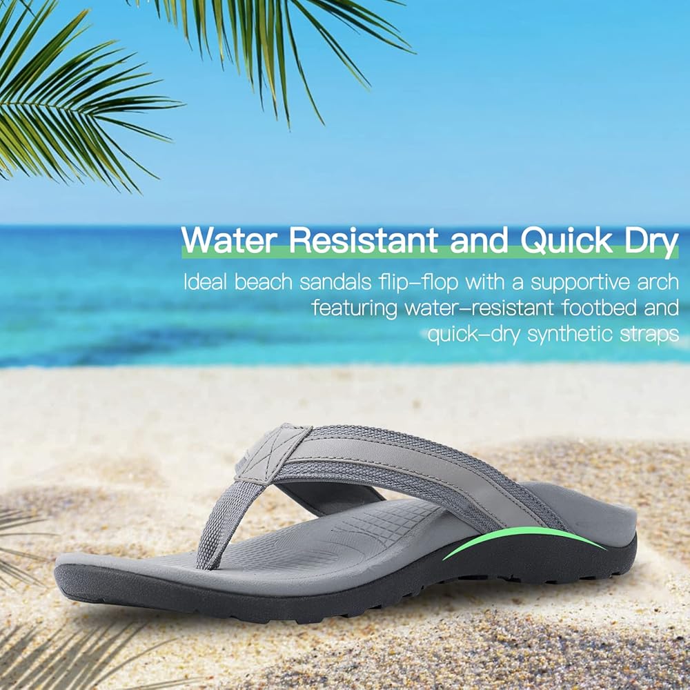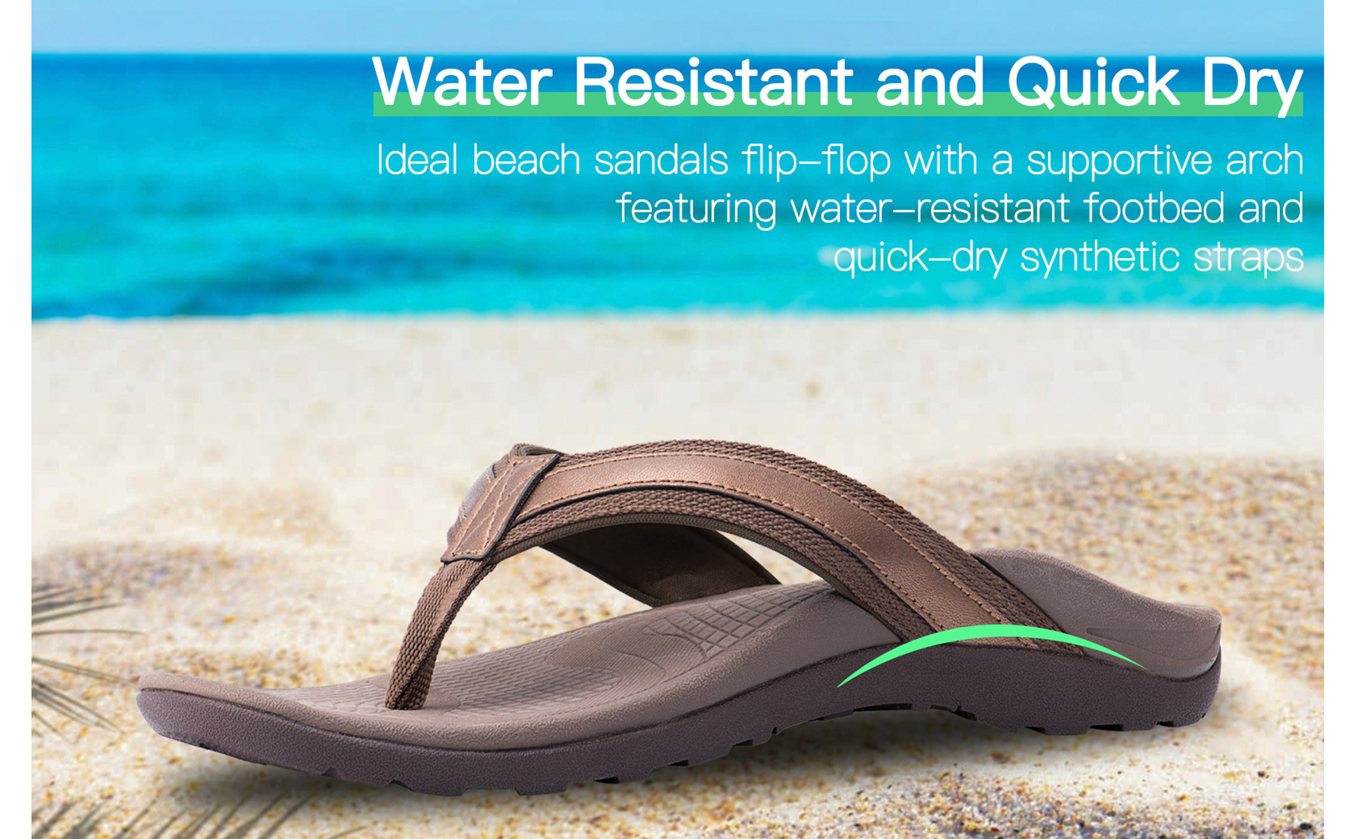 • DEEP HEEL CUP: Thearches thong sandals are designed with a structured deep U-shaped heel cup. It helps to evenly distribute your feet pressure, improves foot and leg alignment, enhances comfort, and realigns the skeletal system to protect their heel during the severe impact of landing. In other words, it can provide extra support and stability while walking or standing and also prevent sliding and add friction during high impact.