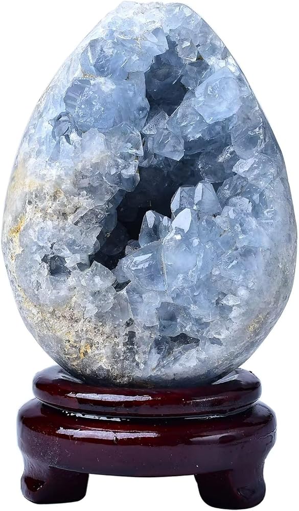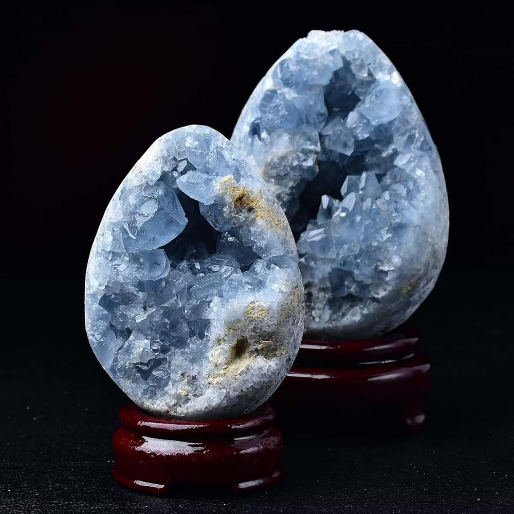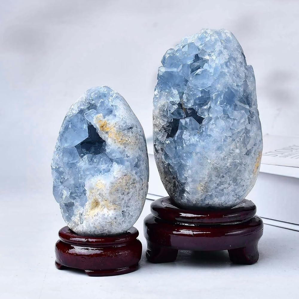 المقاس: وزن كل حجر كريستال علاجي 3.5-4.0 كجم، مع حامل خشبي. نحت يدوي، بيضة غير منتظمة الشكل، كل جيود كوارتز فريد من نوعه من حيث الحجم والنمط، يرجى السماح بعيب بسيط أو تشقق كمنتج طبيعي.