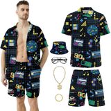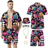 【مجموعة بدلات هاواي】- اجعل الشعور الاستوائي ينبض بالحياة مع مجموعة بدلات هاواي الخاصة بنا والتي تتضمن قميصًا منقوشًا هندسيًا وسروالًا قصيرًا وقبعة وسلسلة ذهبية وسوارًا ونظارات. احتضن التصميمات المستوحاة من الطراز القديم والتي تجعلك مميزًا في حفلة الشاطئ.