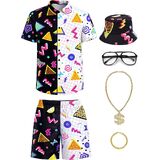 【تصميم فريد】- تتميز قمصان البدلة الرياضية والمجموعة القصيرة الخاصة بنا من الثمانينيات بتصميم فريد يتميز بقمصان قصيرة الأكمام وأزرار إغلاق لتتناسب تمامًا مع ألوان الزي والنظارات الشمسية. الألوان الزاهية تجعلك تبدو نشيطًا ومتحمسًا ومثاليًا لفصل الصيف.