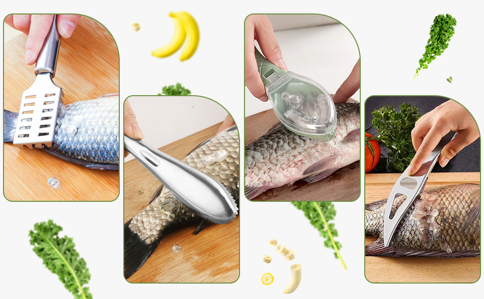 مريحة في الإمساك: تتميز مزيلات قشور الأسماك بمقبض مناسب الحجم من أجل قبضة قوية ومريحة، ليس من السهل الانزلاق أو السقوط، مما يمنحك المزيد من الأمان عند الاستخدام، وتساعدك على التخلص من قشور الأسماك بما في ذلك المناطق التي يصعب الوصول إليها بالقرب من الزعانف. والبطن.