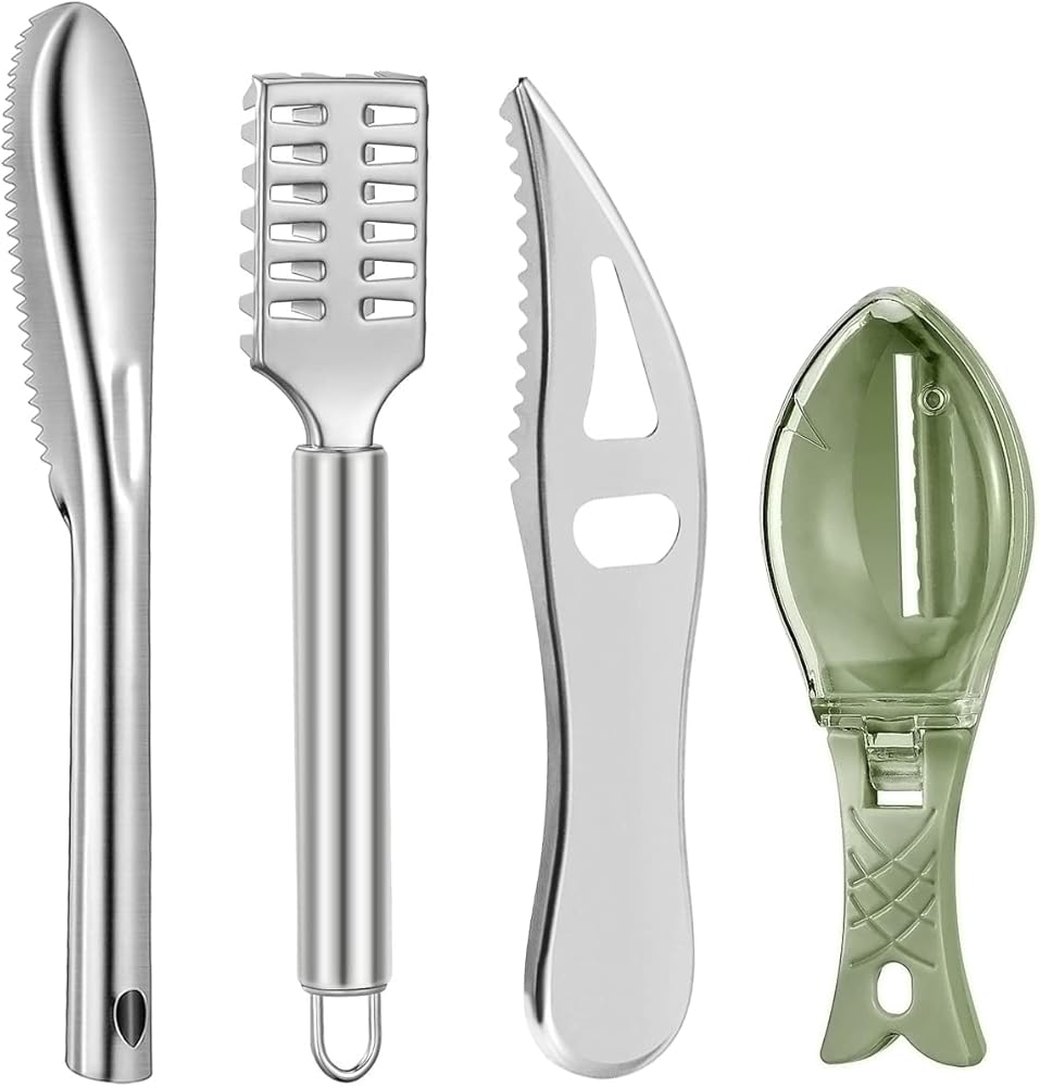 كمية العبوة: سوف تحصل على 4 قطع من فرش قشارة السمك المصنوعة من الفولاذ المقاوم للصدأ في 4 أنماط، وكمية كافية وخيارات نمط للاستخدام اليومي والاستبدال.