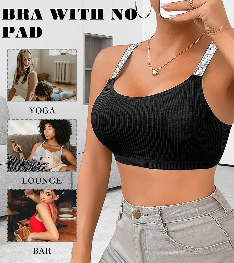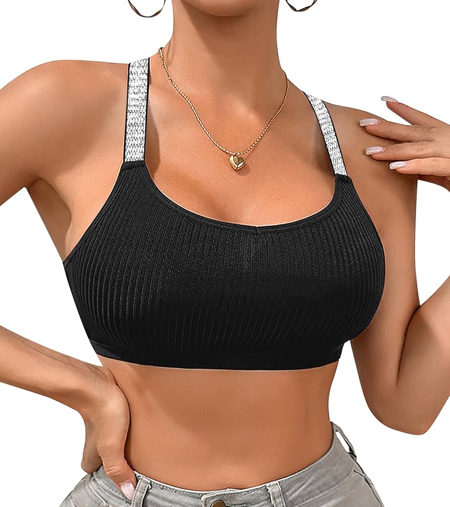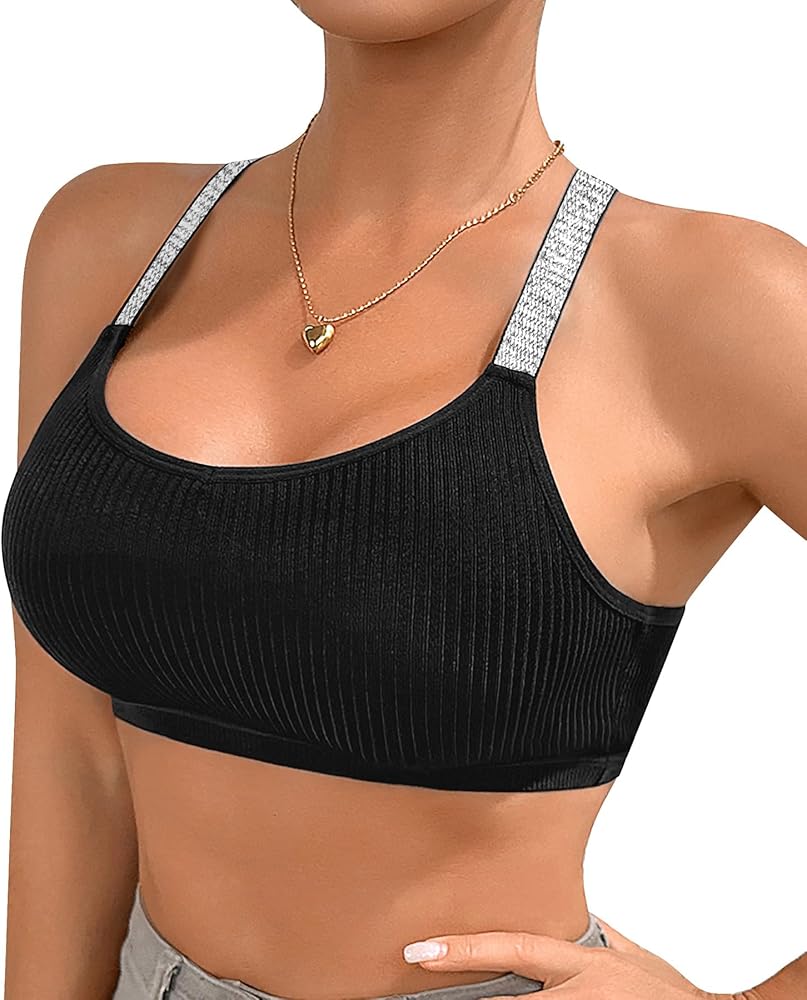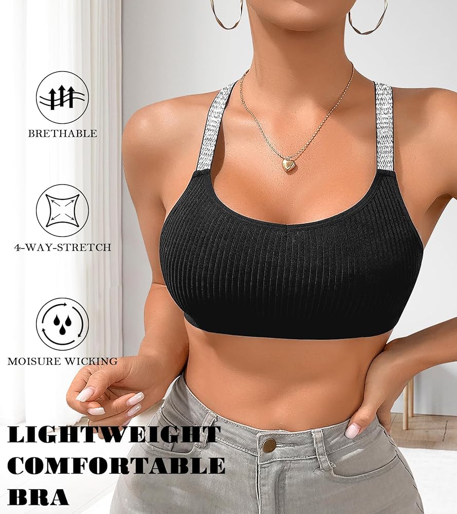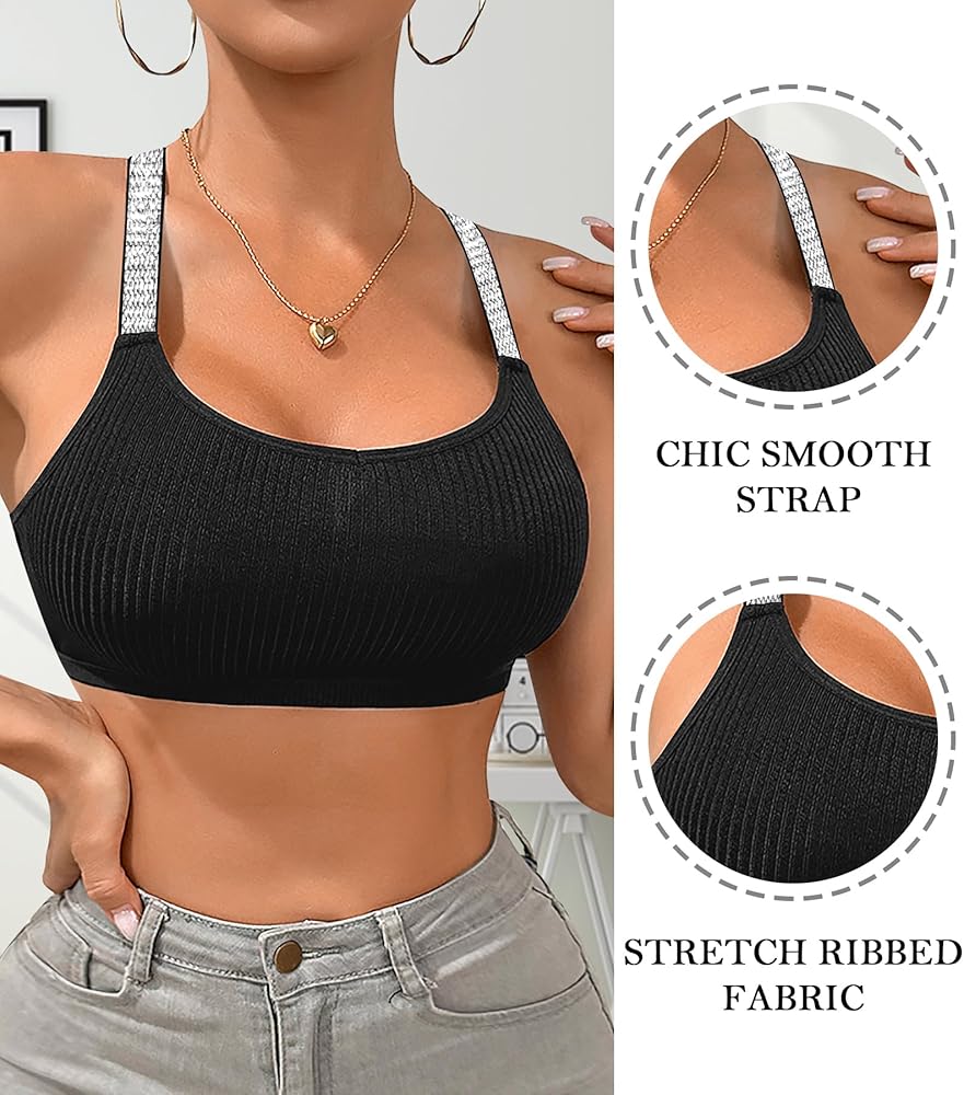 SEXY AND STYLISH DESIGN: The ASIMOON Ribbed Knitted Tank Crop Top boasts a sleek, modern design that enhances your style and confidence. The unique silver woven trim on the shoulder straps adds an elegant touch, making it a standout piece in your wardrobe.