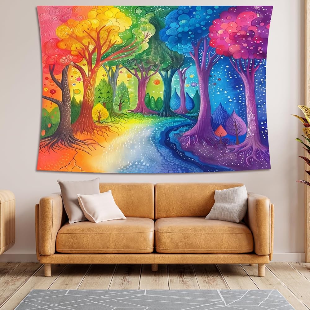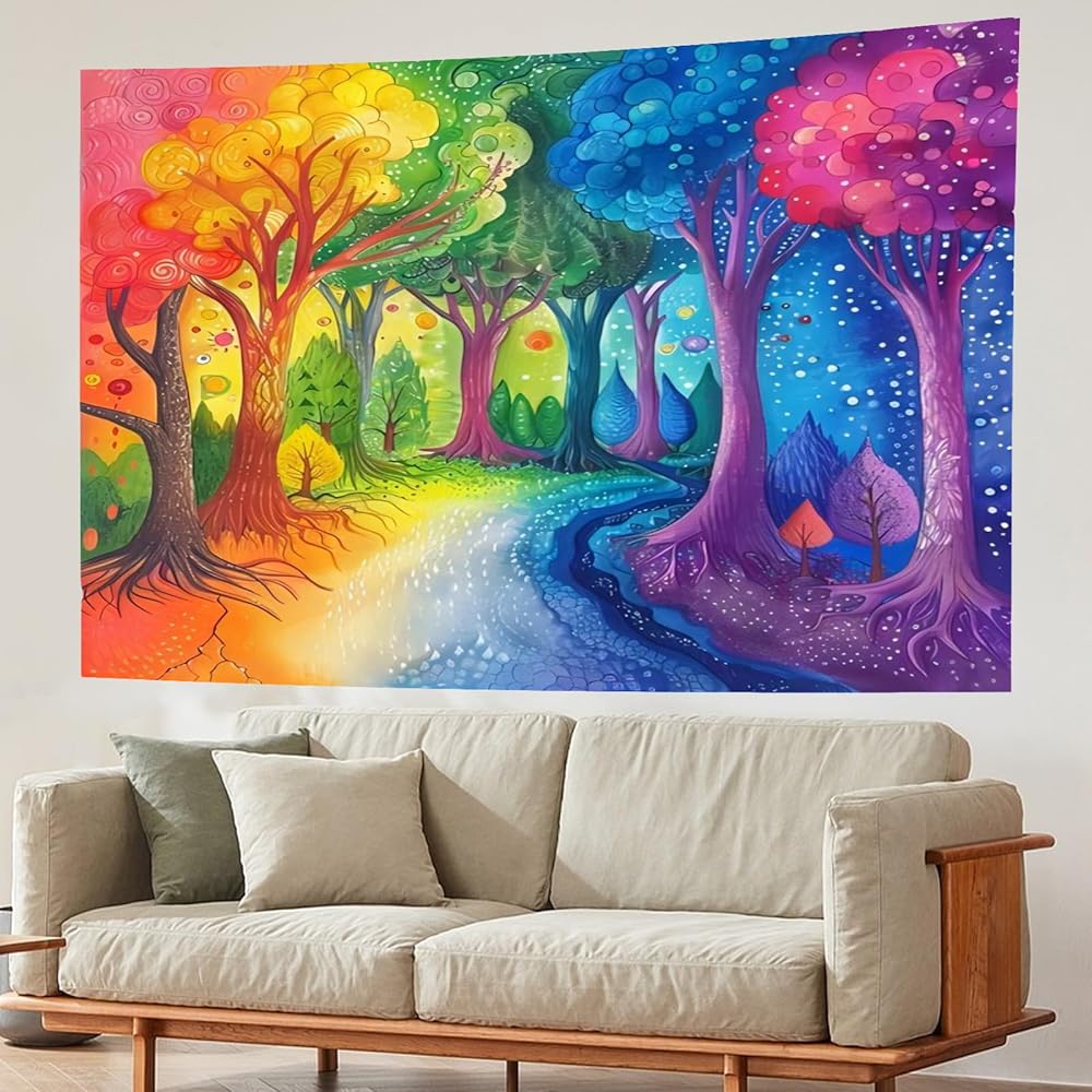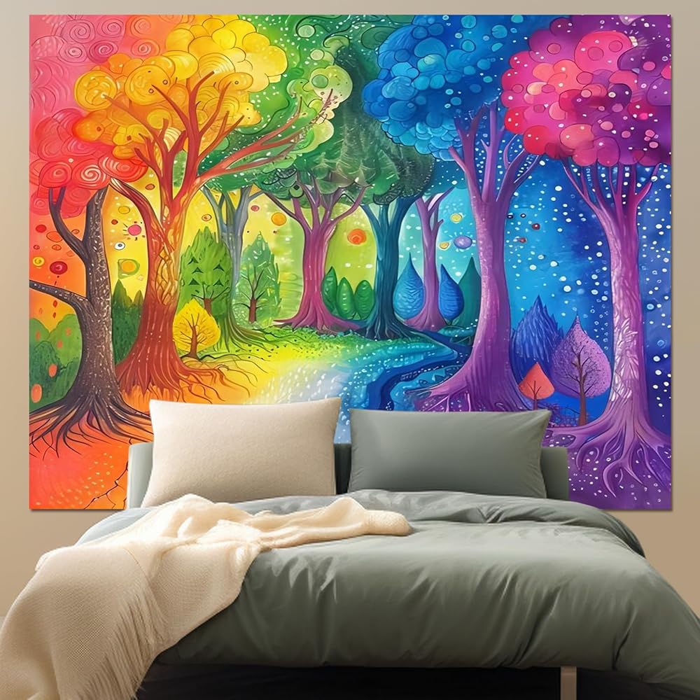 • UNIQUE DESIGN: Extraordinary touch, warmth and colorful forest tapestry leads the trend.The colorful forest tapestry transports you to a dreamy fairy tale world.We sincerely hope that our colorful forest tapestries can bring you beautiful enjoyment and help you live a warm cozy life.