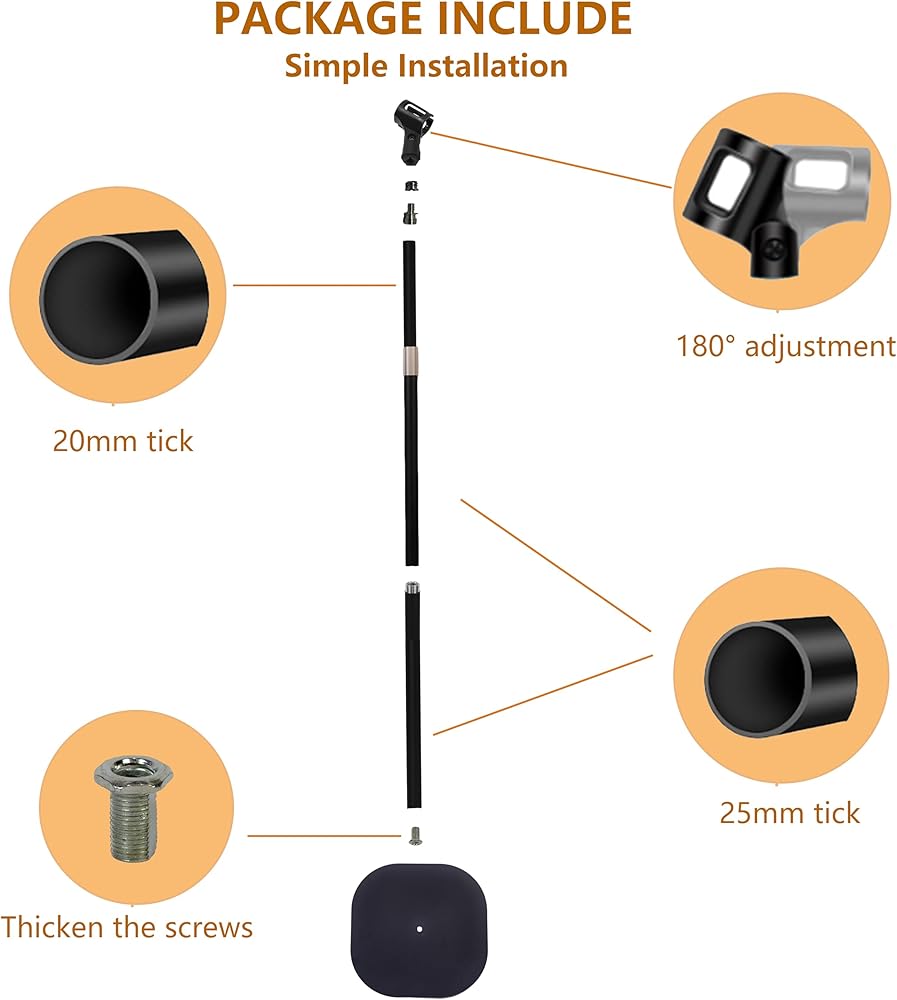 Desk Microphone Stands: The desktop arm mic stand tube and base are made of metal, which is rust-proof and waterproof. Unlike the tripod stand, this mic stand is more suitable for desktop to avoid wrapping wires at the bottom.