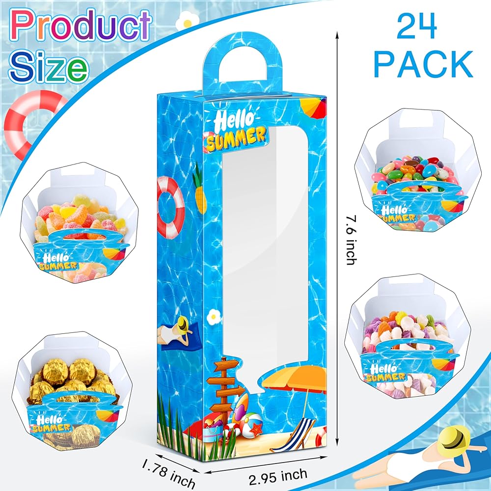jophmo 24pcs الصيف الشاطئ بركة حزب لصالح أكياس هدية صناديق، مرحبا الصيف الأزرق دمية هدية صناديق جودي حقيبة الحلوى صناديق السباحة حزب اللوازم للأطفال الاستوائية هاواي لوا الصيف حزب تفضل