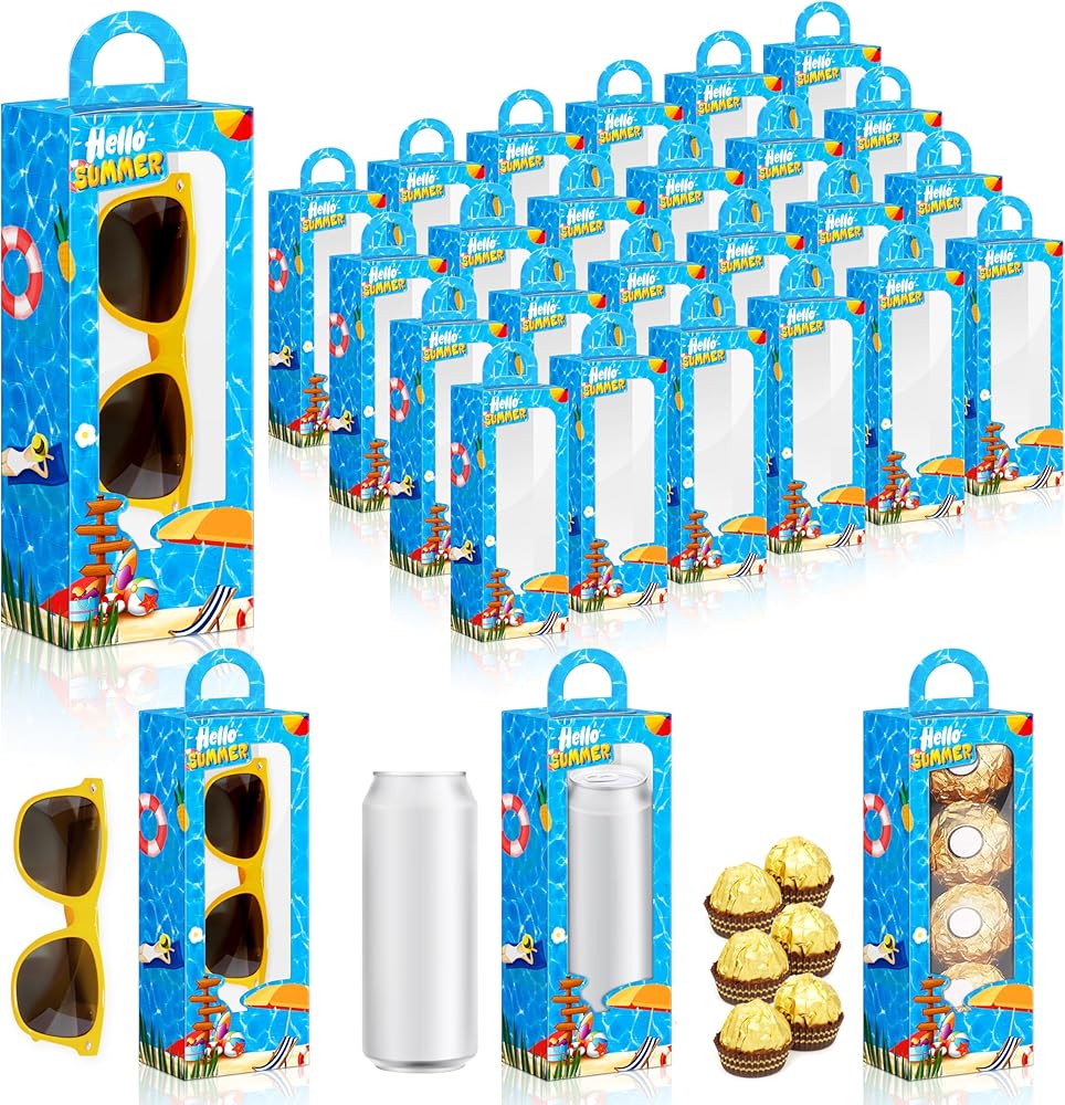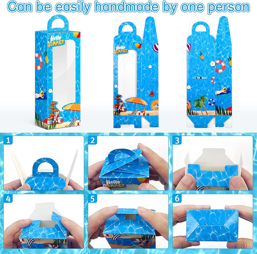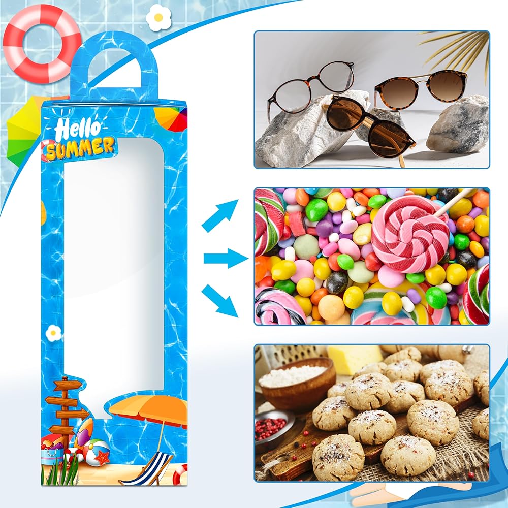 • Excellent Quality - Crafted from high-quality cardstock, these summer party favor boxes are eco-friendly, durable, and resistant to breakage. The clear PVC window on each box allows guests to peek inside and adds excitement and anticipation to the party.