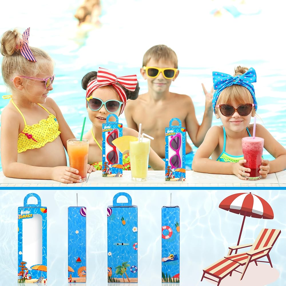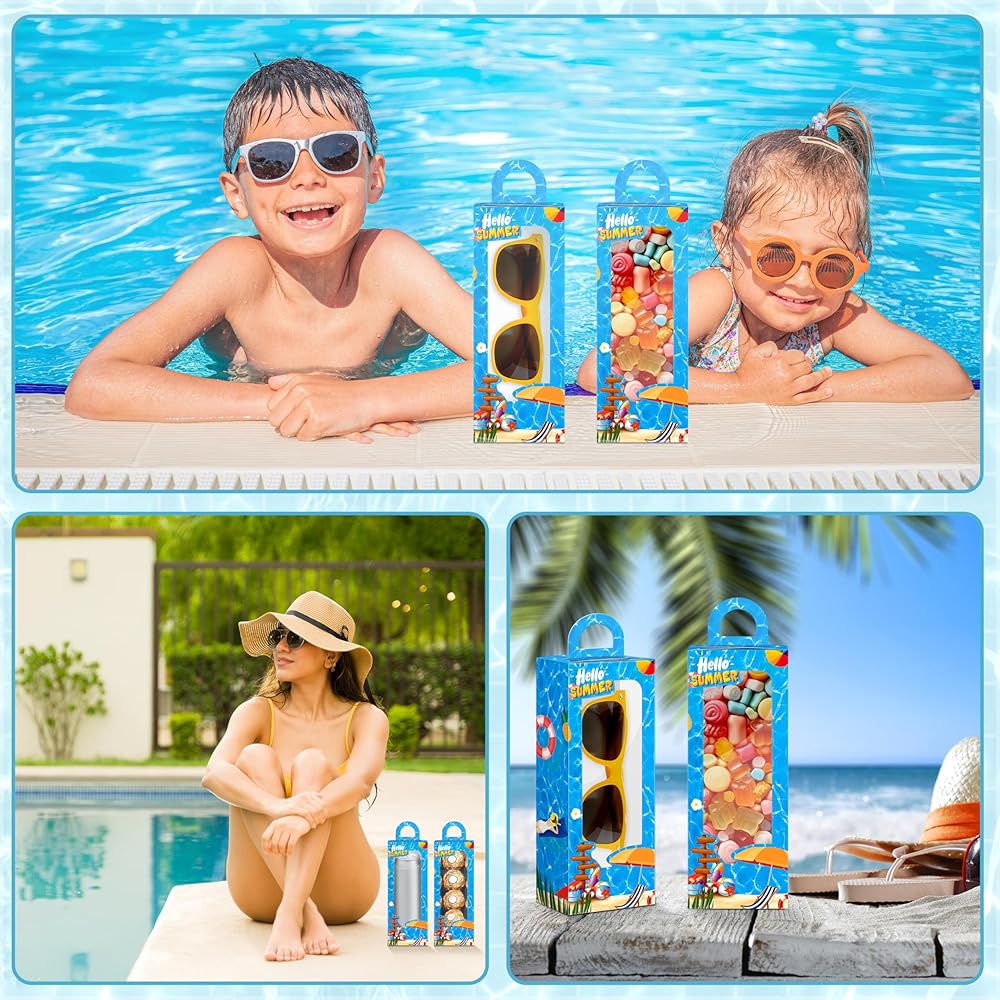 • Unique Design - The boxes feature a summer-themed design with prints of pools, swimming rings, palm trees, beach chairs, and other patterns. The bright colors and clear printing make them perfect for summer party decorations. Additionally, each gift box comes with a carrying handle for easy transportation and storage.
