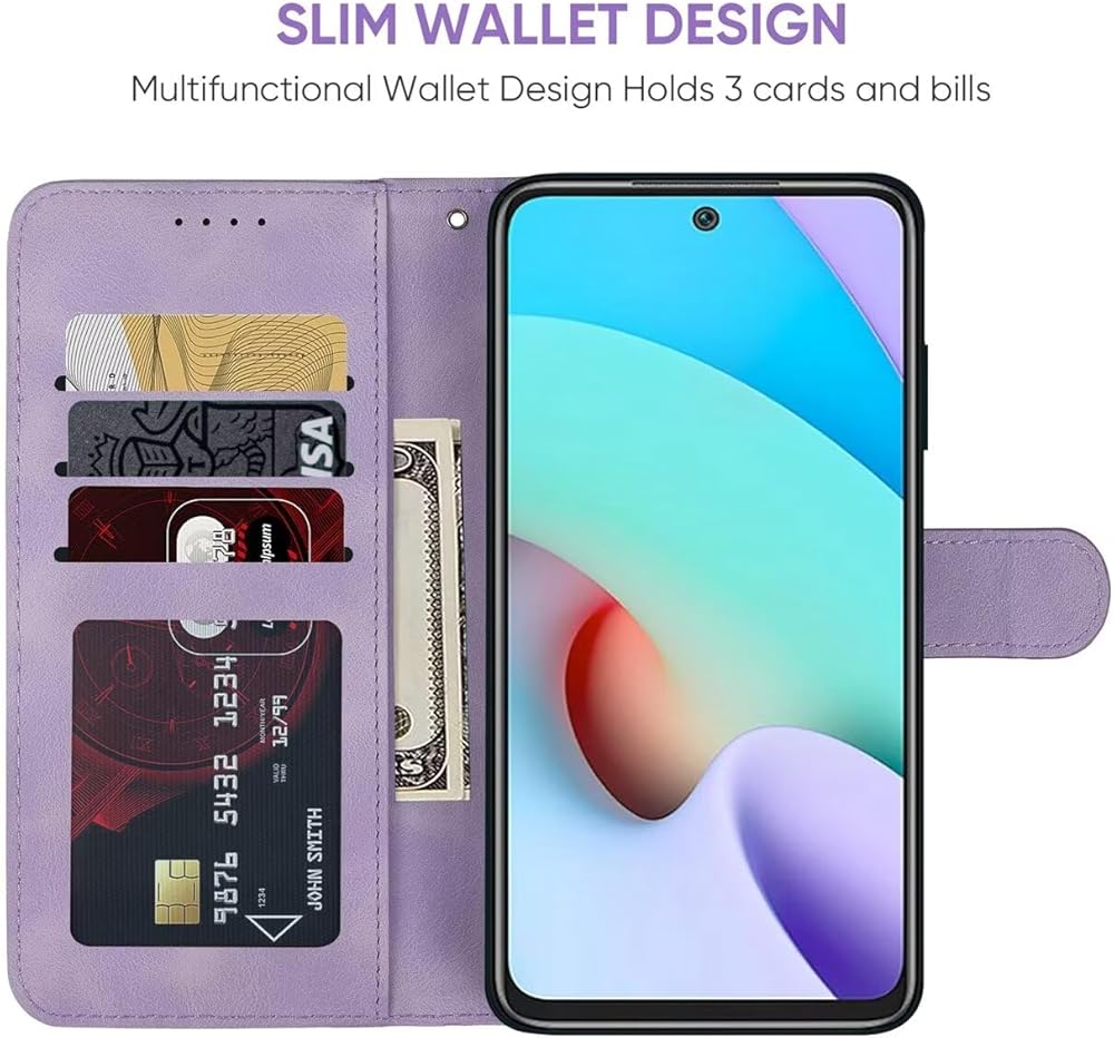 Redmi 10 2022 Wallet Cover, [Multifunction case] - Perfect Combination of a wallet and cell phone case, With id Credit Card Slots, it can be used as wallet to keep multi credit cards, cash, ID, and money.Magnetic closure design is convenient to use.