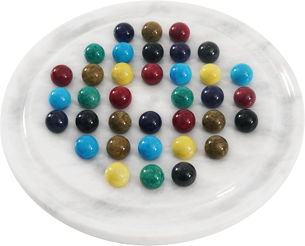 ألعاب لوحية مستديرة مصنوعة يدويًا من راديكالن ماربل سوليتير أبيض مقاس 25.4 سم، ديكور المنزل والمكتب مع 42 كرة رخامية - 2 لاعبين ألعاب ذهنية وألعاب ممتعة للبالغين