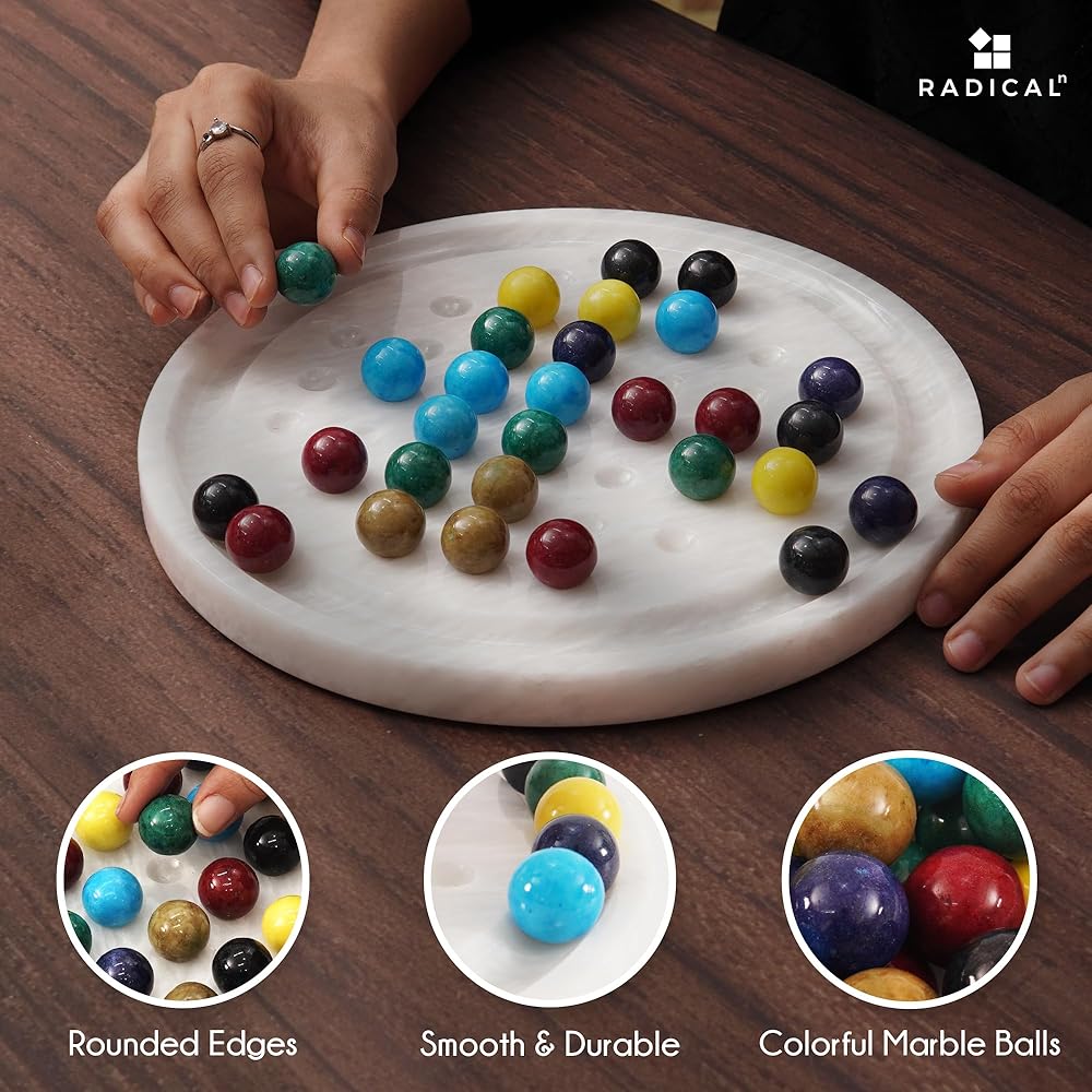 - 🎲[ما هو متضمن]🎲 - 1 × لوح سوليتير و42 × كرة رخامية طبيعية. يأتي مع عبوة آمنة وهشة تحمل العلامة التجارية RADIALn.