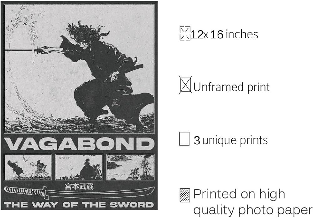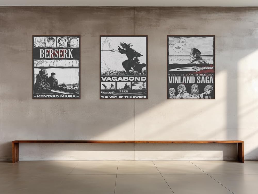 Epic Tales, Captivating Art: These posters go beyond decoration; they encapsulate the very spirit of Vinland Saga, Berserk, and Vagabond. The captivating artistry on each poster brings to life the epic tales and iconic characters from these renowned manga series.
