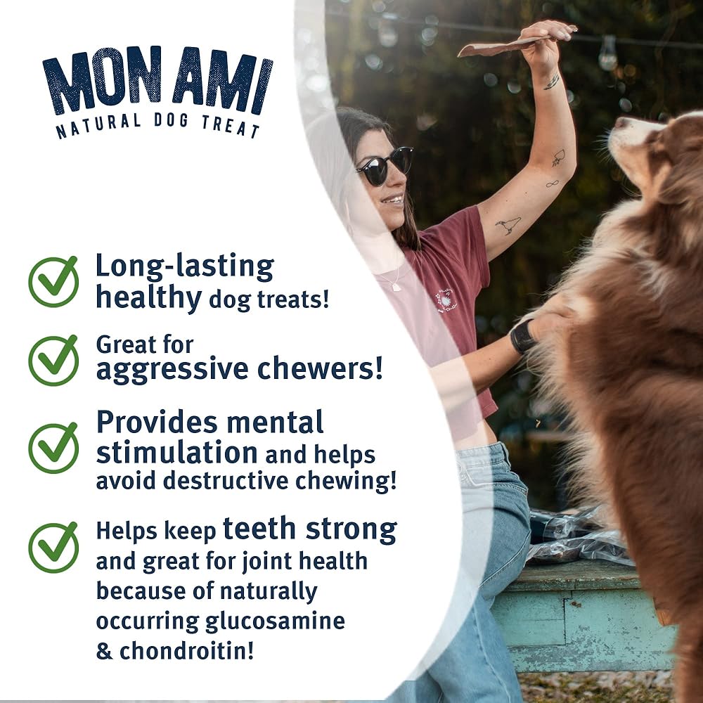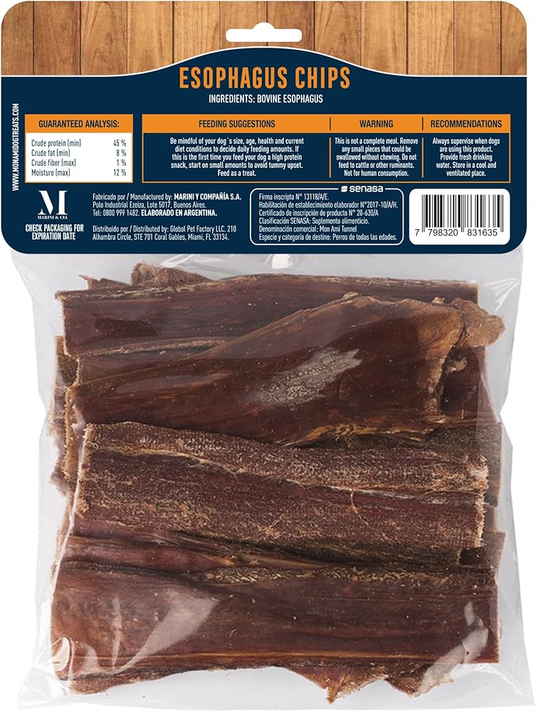 علاجات للكلاب تدوم طويلاً - امنح حيوانك الأليف أعواد حلوى الكلاب اللذيذة والتي تدوم طويلاً. توفر مضغ اللحم البقري الخاص بنا وقت مضغ طويل، وهو مثالي للمضغين العدوانيين. يمكن أن يساعد مضغ حلوى المريء المقدد للكلاب في دعم صحة الأسنان بشكل عام ويمكن أن يوفر منفذًا إيجابيًا للتحفيز الذهني، مع تجنب المضغ المدمر للأشياء المنزلية! قد لا تحتوي عظام الكلاب المملوءة الأخرى ومضغ الكلاب الطبيعي على الجلوكوزامين الطبيعي والكوندرويتين اللذين يعتبران مفيدين لصحة المفاصل والعظام.