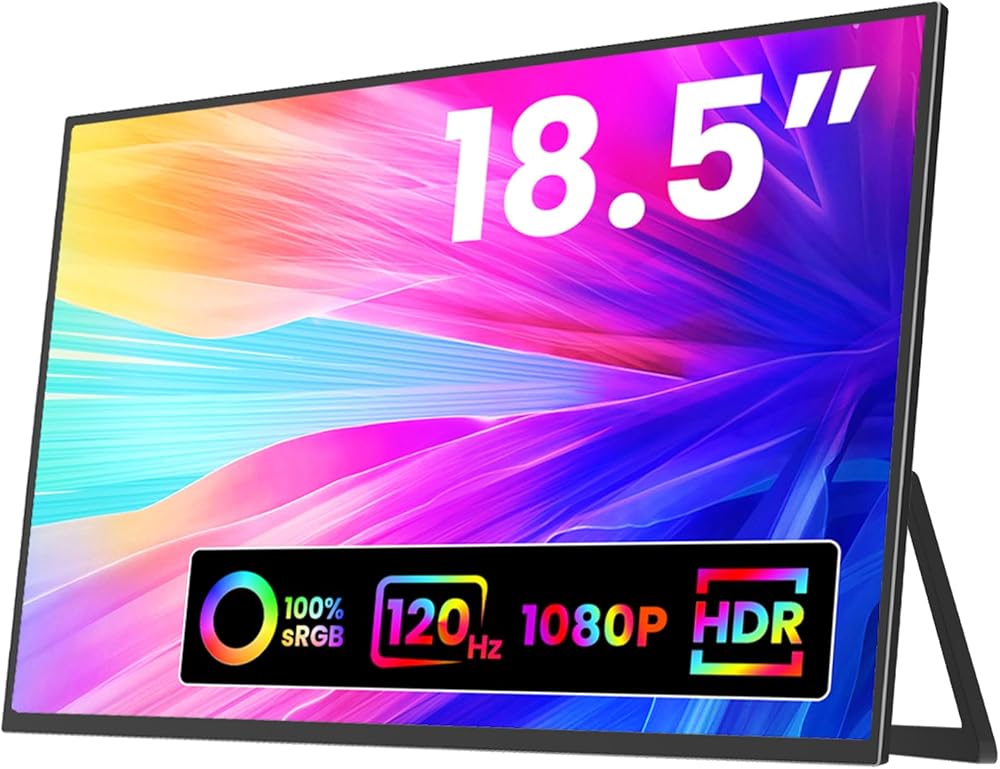 شاشة KOHO كبيرة محمولة - شاشة ألعاب كمبيوتر مقاس 18.5 بوصة 120 هرتز 100% sRGB FHD 1080P USB-C HDMI IPS شاشة لأجهزة الكمبيوتر المحمول MacBook Surface PC PS4/PS5 Xbox مع مكبرات صوت بمسند VESA قابلة للتركيب