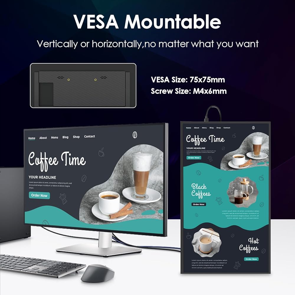 ✅【مسند قابل للتعديل وقابل للتركيب وفقًا لمعايير VESA】يوفر المسند القابل للتعديل بزاوية 180 درجة مرونة كبيرة وتعدد الاستخدامات لسيناريوهات مختلفة، مما يجعله رفيقًا مثاليًا للسفر لأجهزة الكمبيوتر المحمولة والهواتف، ويعمل كشاشة ثانية أو مزدوجة لتحقيق أقصى قدر من كفاءة العمل وبساطته. يوفر تصميم التركيب القياسي وفقًا لمعايير VESA خيارًا احتياطيًا لتركيب شاشة العرض الثانية المحمولة على أي جدار أو سطح طاولة.