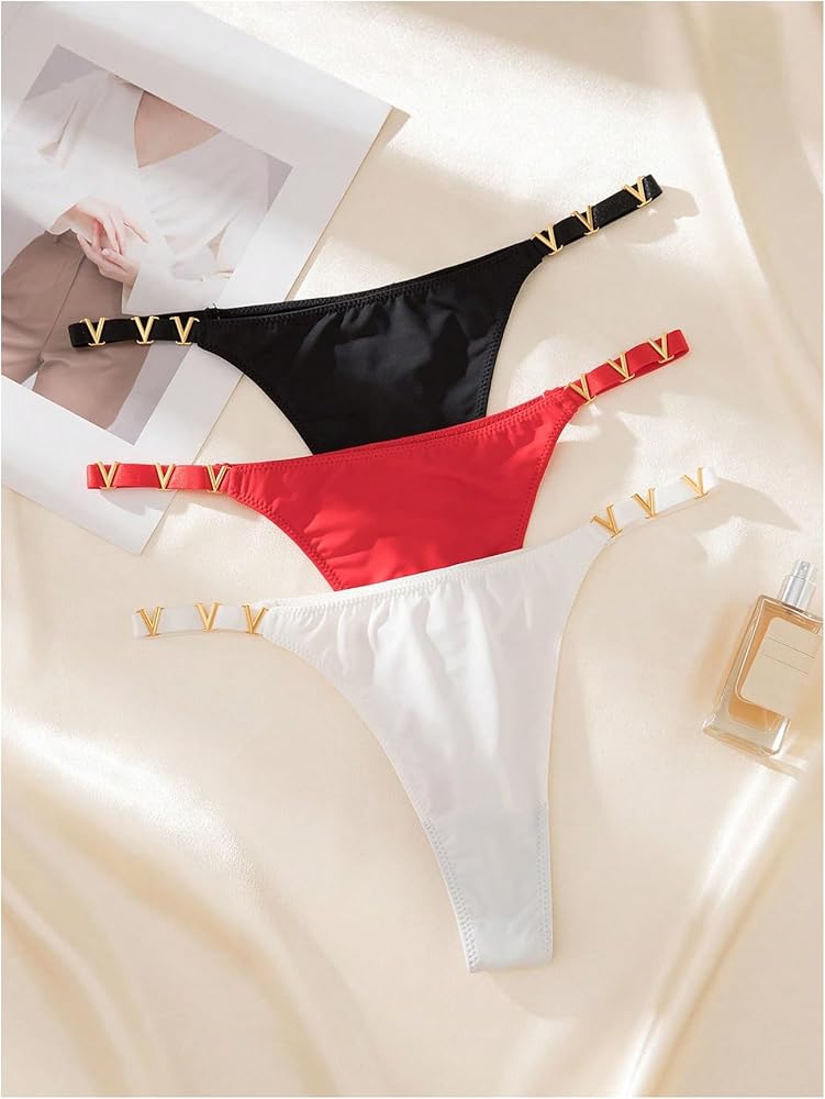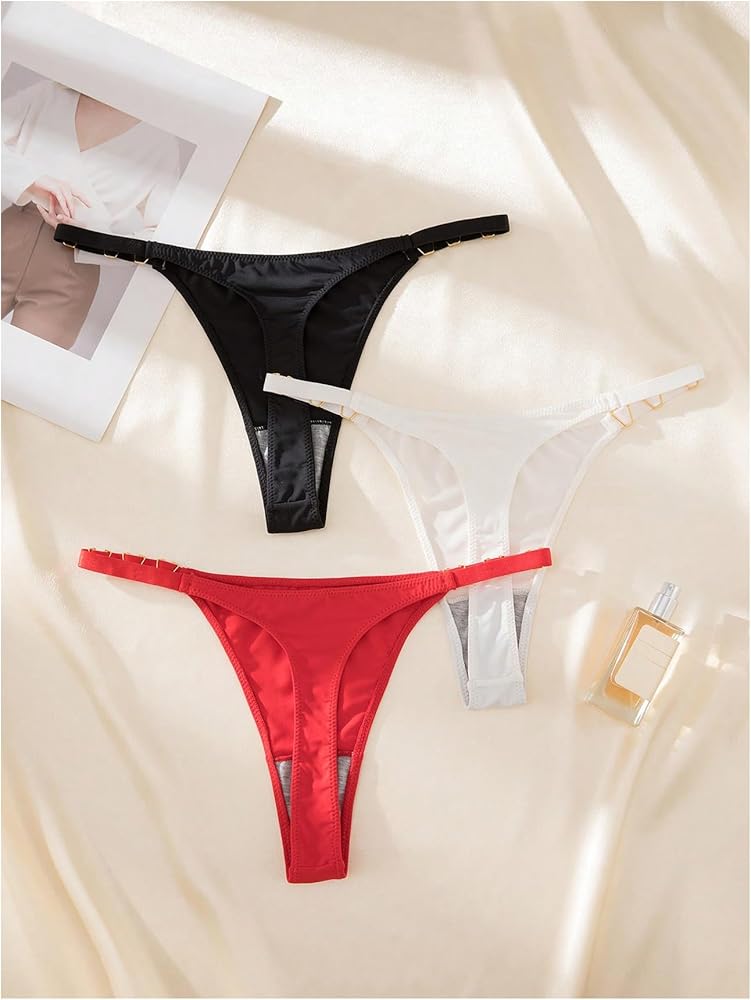 Design: Women's thong panty features 3 pcs sets, low rise, metal decor, solid, gives you stylish and comfort
