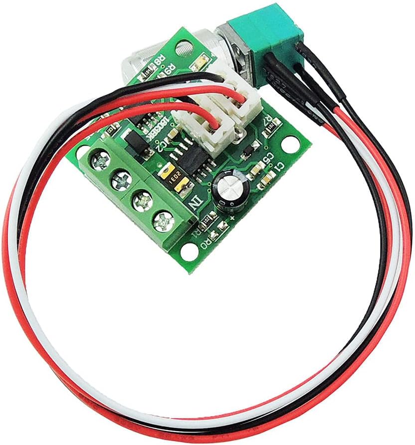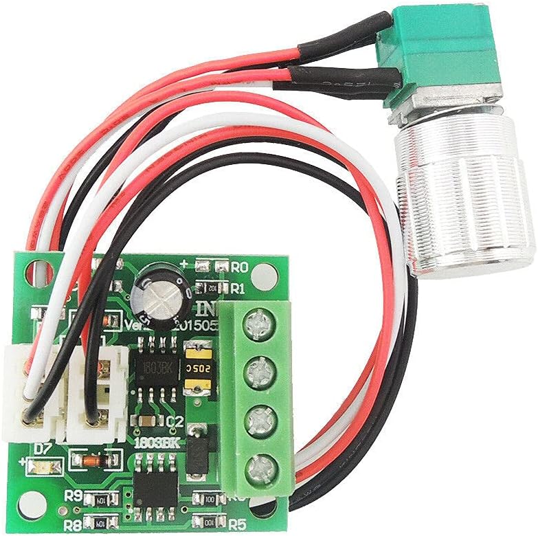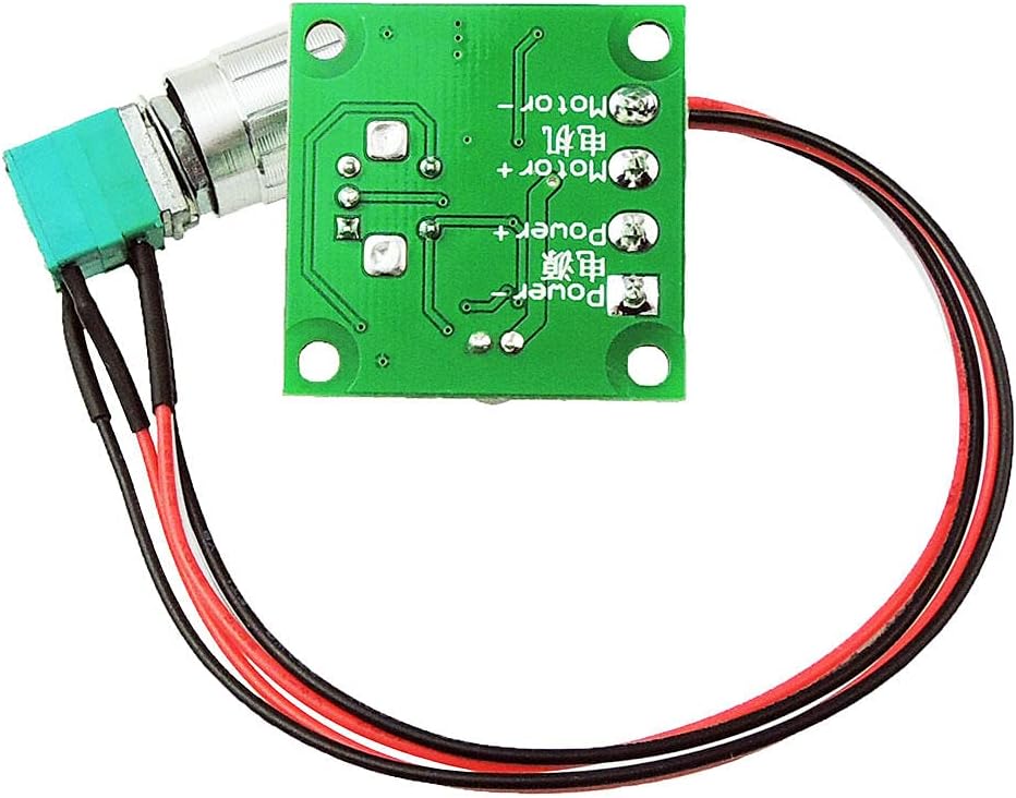 Main technical parameters:Input supply voltage: 1.8V-15VDCThe maximum output power: 30WThe maximum continuous output current :2ADuty Cycle adjustable: 0%-100%Item size: 1.3*1.3*0.6 inches ; Net Weight:0.5 ouncesFeatures:1803BKW DC Motor Speed Regulator controls the speed of a DC motor by adjusting Pulse-Width-Modulated (PWM)The input power range is DC 1.8-15VUse a 2A resettable fuse to protect the controllerPotentiometer cable length 20cm