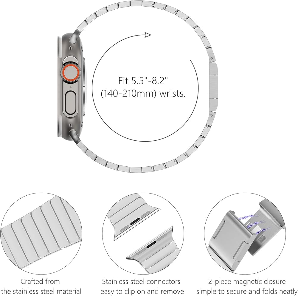 • ✨تصميم مشبك جميل: الإبزيم مصنوع من قطعتين للإغلاق المغناطيسي الذي يسهل تأمينه بشكل مبهج. يُغلق بإحكام ويُطوى بشكل أنيق داخل الشريط المصنوع من الفولاذ المقاوم للصدأ.