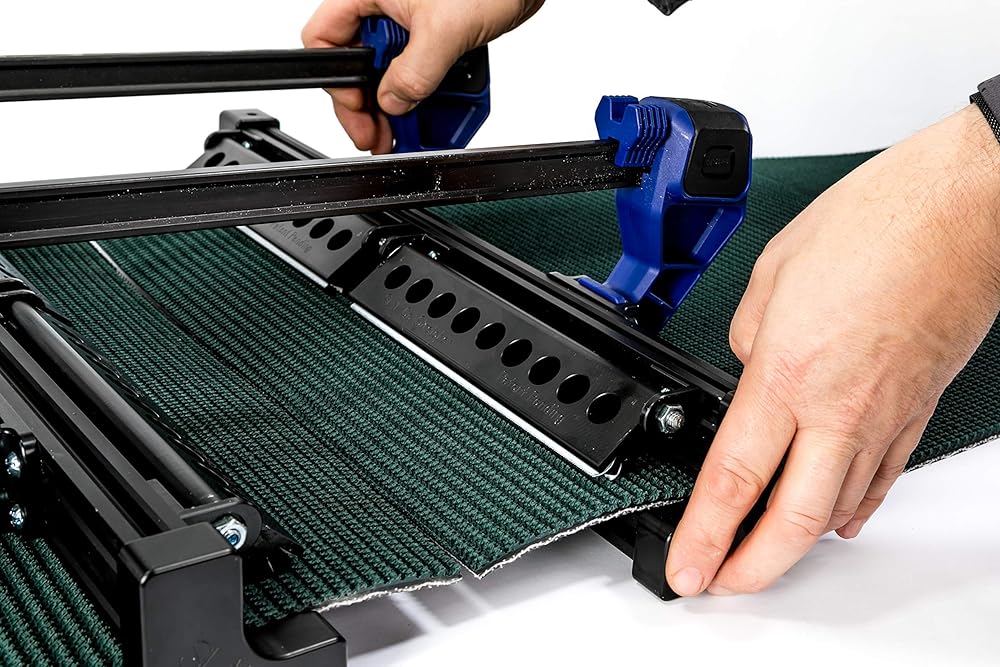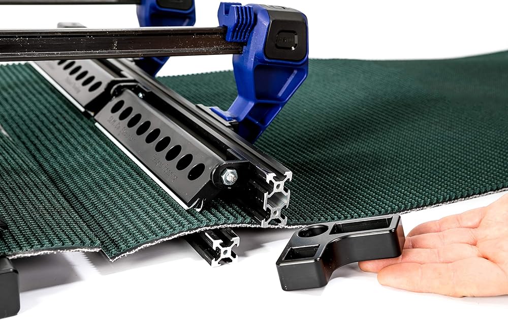 Industrial Conveyor Belt stretcher Tool . With our Conveyor Accessories lightweight aluminum belt clamps are the perfect tool for pulling conveyor belts together for quick repair, vulcanizing, and fastener installation. Belt Stretching tool any belt replacement will be no brainer for your maintenance . Vary easy to use . Low cost . UP to 18” wide belts . When your factory conveyor belt is stopped for maintenance, its own weight can create problems by distributing the tension unevenly. To ale sure that a belt can be safely cut and securely spliced by service technicians, the forces in the area under repair should be spread over the whole width. For this purpose SLM has developed the belt clamp. It is suitable for a variety of materials and belt types – and meets rigorous industry standards. Our belt clamps are used to restrain or pull a conveyor belt and then hold it firmly in place. Maintenance work becomes much simpler and safer. The user simply slides the aluminium clamp bar into the clamp ends and tightens the ends lock the belt with our unique destined teeth. After that you put a side lock back on its place . Squeeze the handles till you get enough tension. When the repair is finished, a strong force that is evenly distributed over the entire belt width. To rule out hazards, the aluminium bars have a non-slip saw teeth that faces the belt surface. The safety factors of clamp ratings meet or exceed industry safety standards, as verified by third-party tests. The belt clamps can be used on a variety of conveyor belts – for example, PVC belts or solid woven belts.