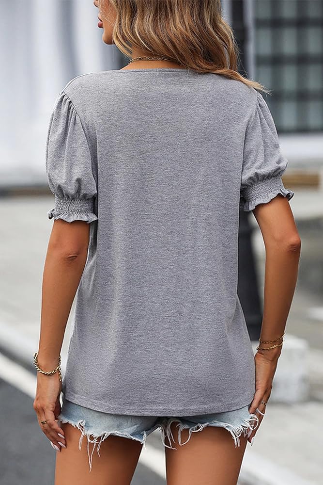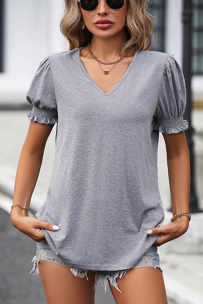 قميص Beachsissi نسائي برقبة على شكل حرف V وأكمام منتفخة كاجوال سادة