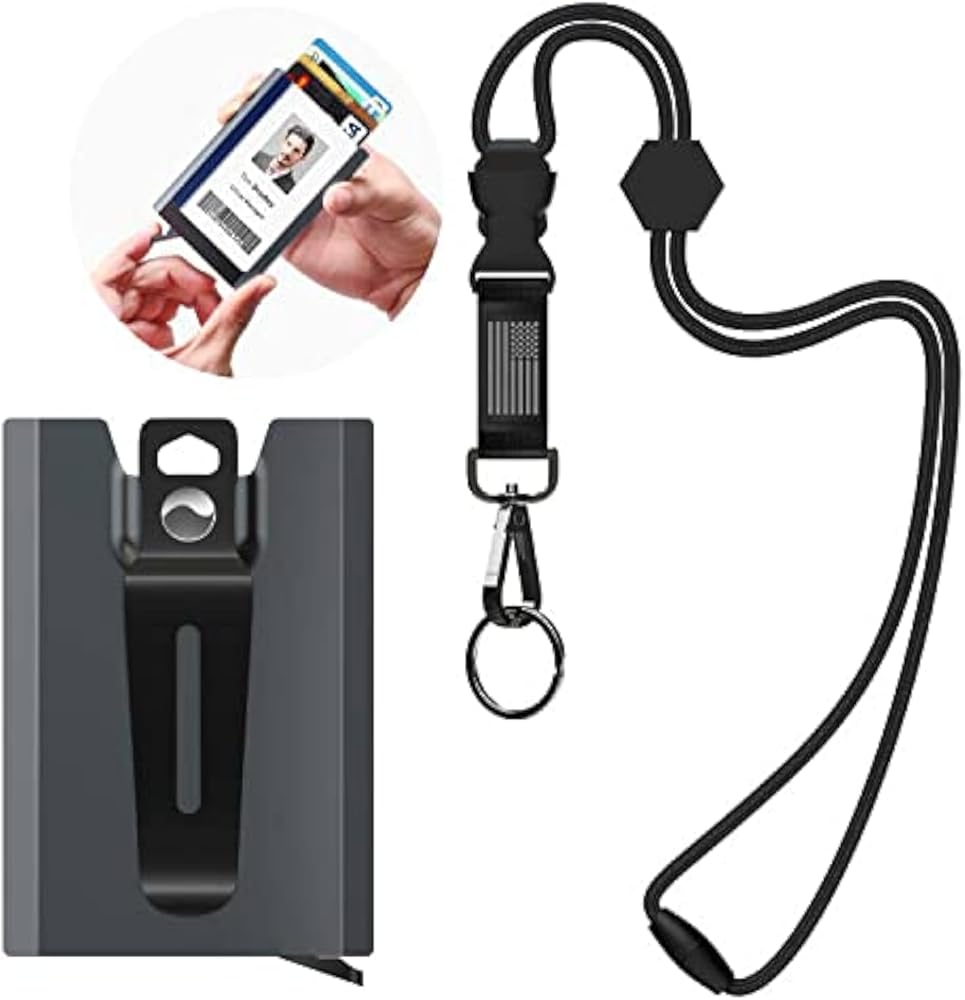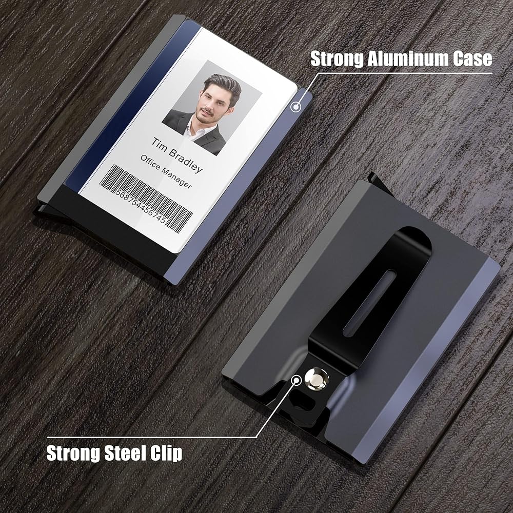 حامل / محفظة شارة صلبة ومتينة: إطار جسم من الألومنيوم مؤمن بمثبتات فولاذية. المشبك أو الموصل للحبل أو سلسلة المفاتيح مصنوع من الفولاذ. لا داعي للقلق بشأن انقطاع الاتصال الذي قد يسمح لك بفقدان شارة الهوية الخاصة بك. زر التحرير السريع في الأسفل لسهولة الإدارة والوصول إلى بطاقات الهوية أو الأحداث أو الموقع أو بطاقات الاسم أو بطاقات العمل. نظرًا للهيكل عالي التحمل (وزن حامل الشارة 54 جرامًا)، قد يشعر بعض العملاء بأن حامل الشارة ثقيل عند استخدامه مع حبل قصير حول الرقبة.